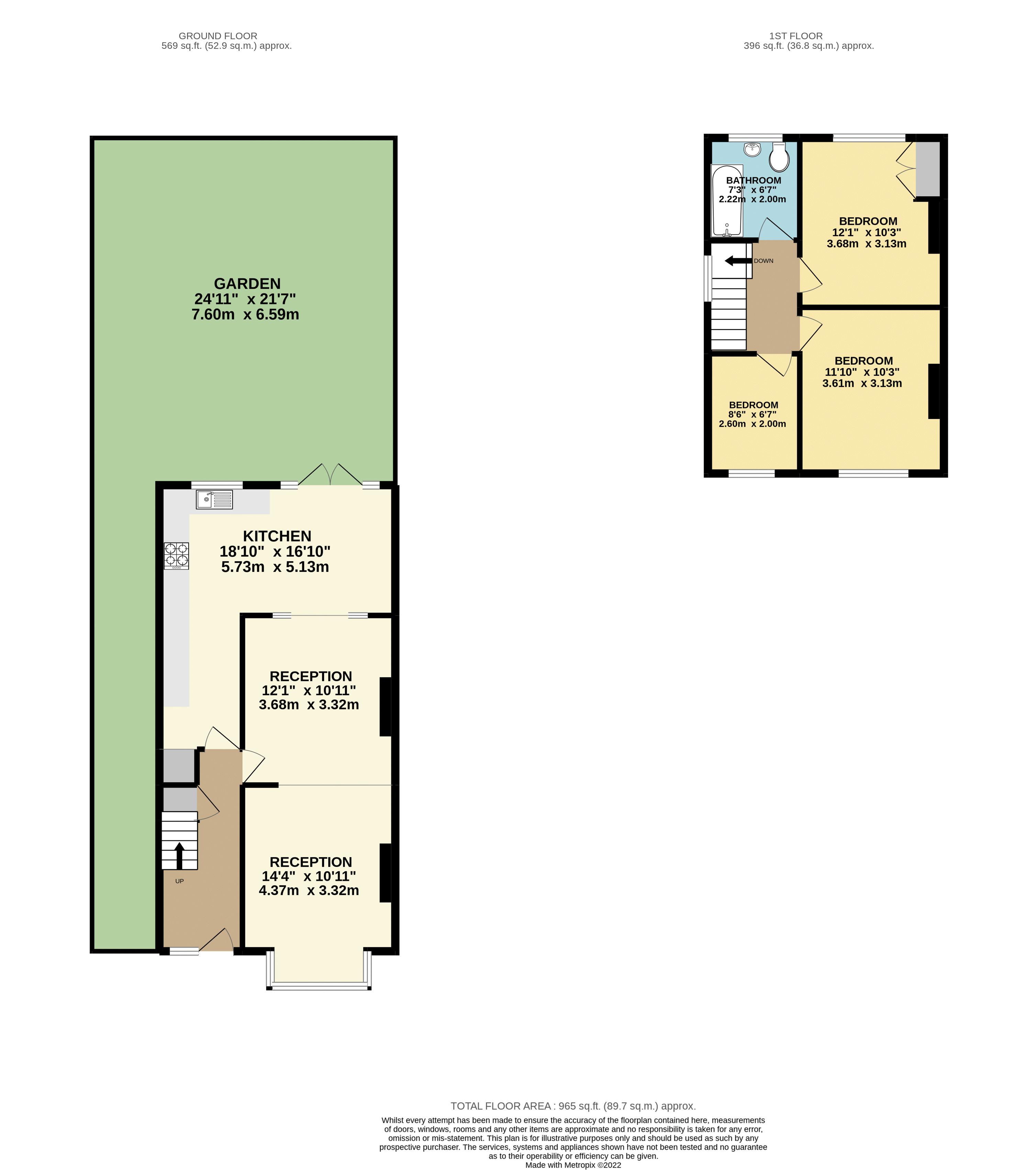 Rear Garden: - 22' 0'' x 26' 0'' (6.70m x 7.92m)