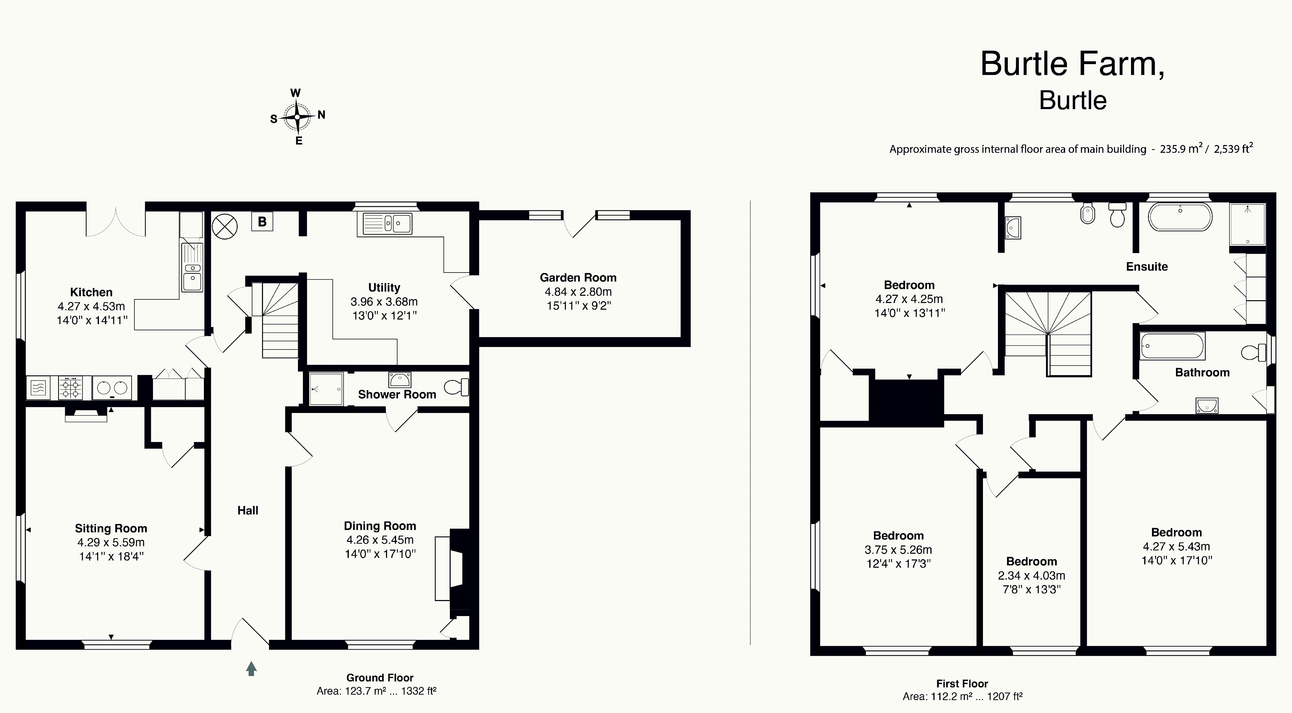 A strikingly, elegant and graceful handrail ascends the stairs to a charming, sunny, galleried landing, flooded by light from an east facing roof light.The principal bedroom is dual aspect with glorious views over the garden. It has a large ensuite which includes two bright fresh rooms, a roll top bath and stylish shower. It is worth noting that from the second room the door opens back on to the landing. There are 3 further bedrooms, 2 large doubles and a single. A large landing cupboard and a family bathroom complete the upstairs.