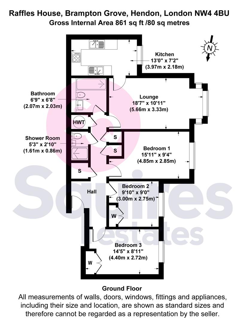 Located on this prestigious street, within easy access of Brent Street's shopping and transport facilities, Middlesex University and Hendon Central Underground Station. A larger than average three bedroom apartment on the ground floor of this highly popular purpose-built block off Brampton Grove. This well-presented flat benefits from a large lounge leading onto a separate fully fitted kosher kitchen, family bathroom, separate shower room with guest wc. Residents car park plus garage with new roof, doors and behind secure gates.