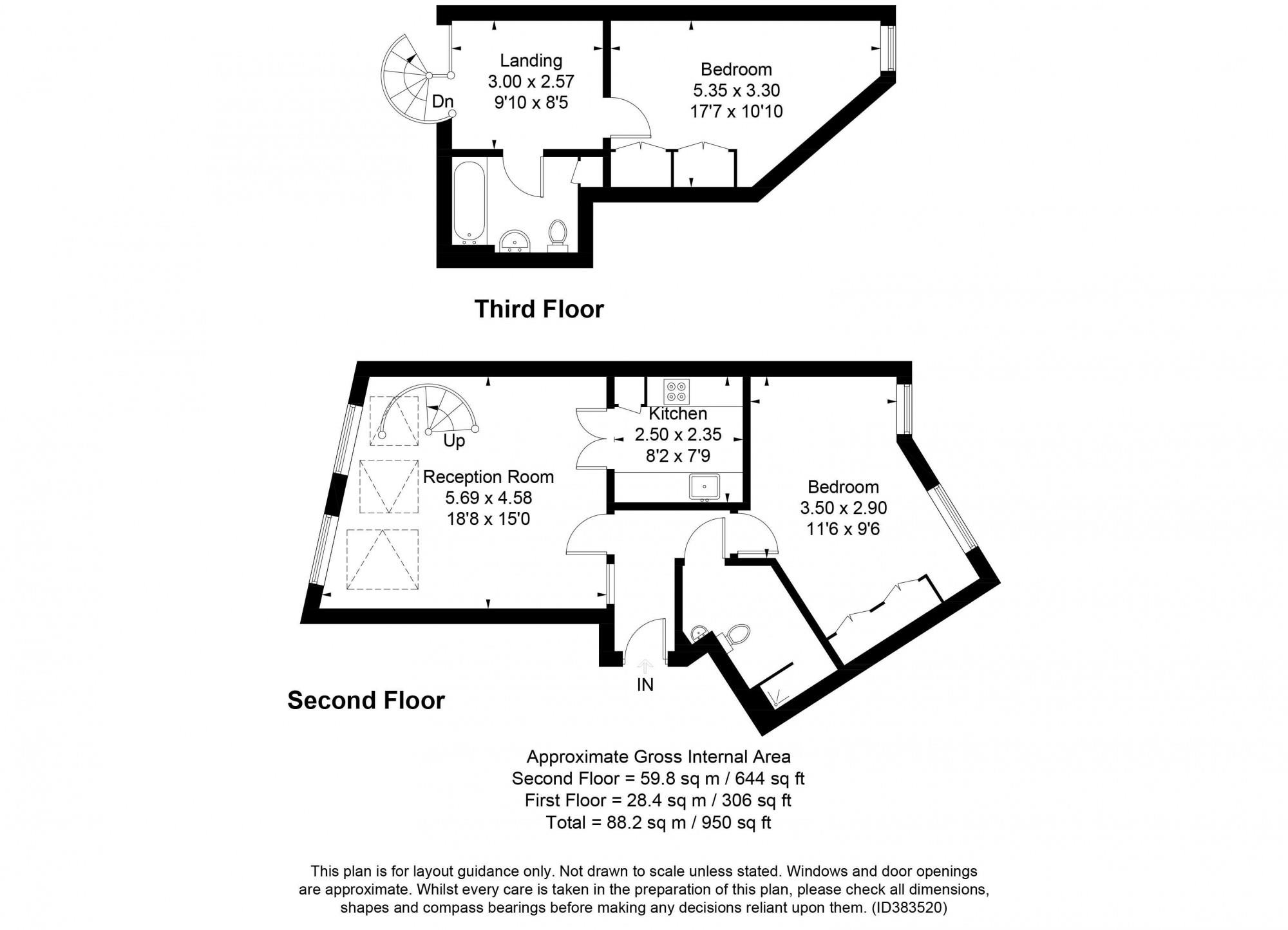 This is an attractive, split level apartment refurbished to a high standard. The first floor consists of a large, open-plan reception room/diner with high ceiling and a sky light allowing plenty of natural light into the property. There is a separate modern kitchen with oven, large fridge and dishwasher. Across the hallway is a well-sized master bedroom with storage and a separate modern bathroom. A spiral staircase leads up to the second floor and another good sized bedroom with storage and a modern bathroom next door.