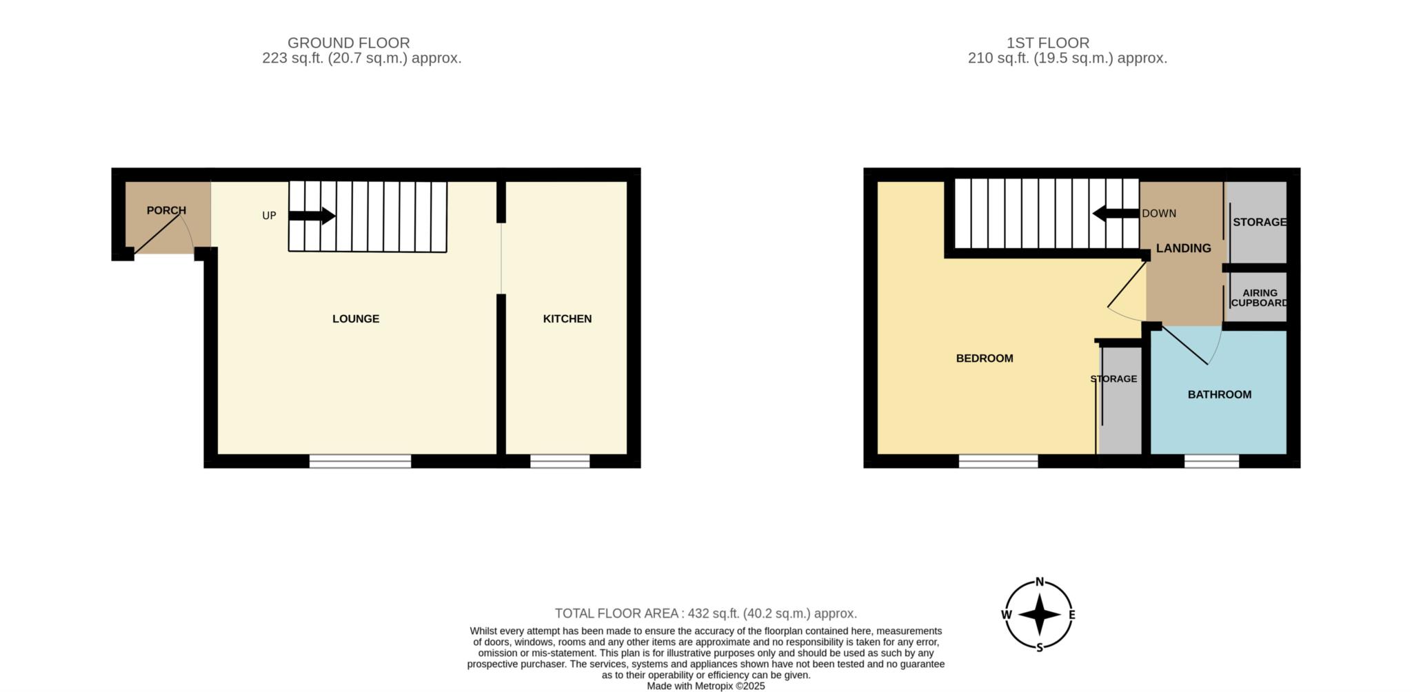 Upstairs, the property comprises a generous double bedroom with built in storage, a bathroom fitted with a modern white suite, and further storage including an airing cupboard.