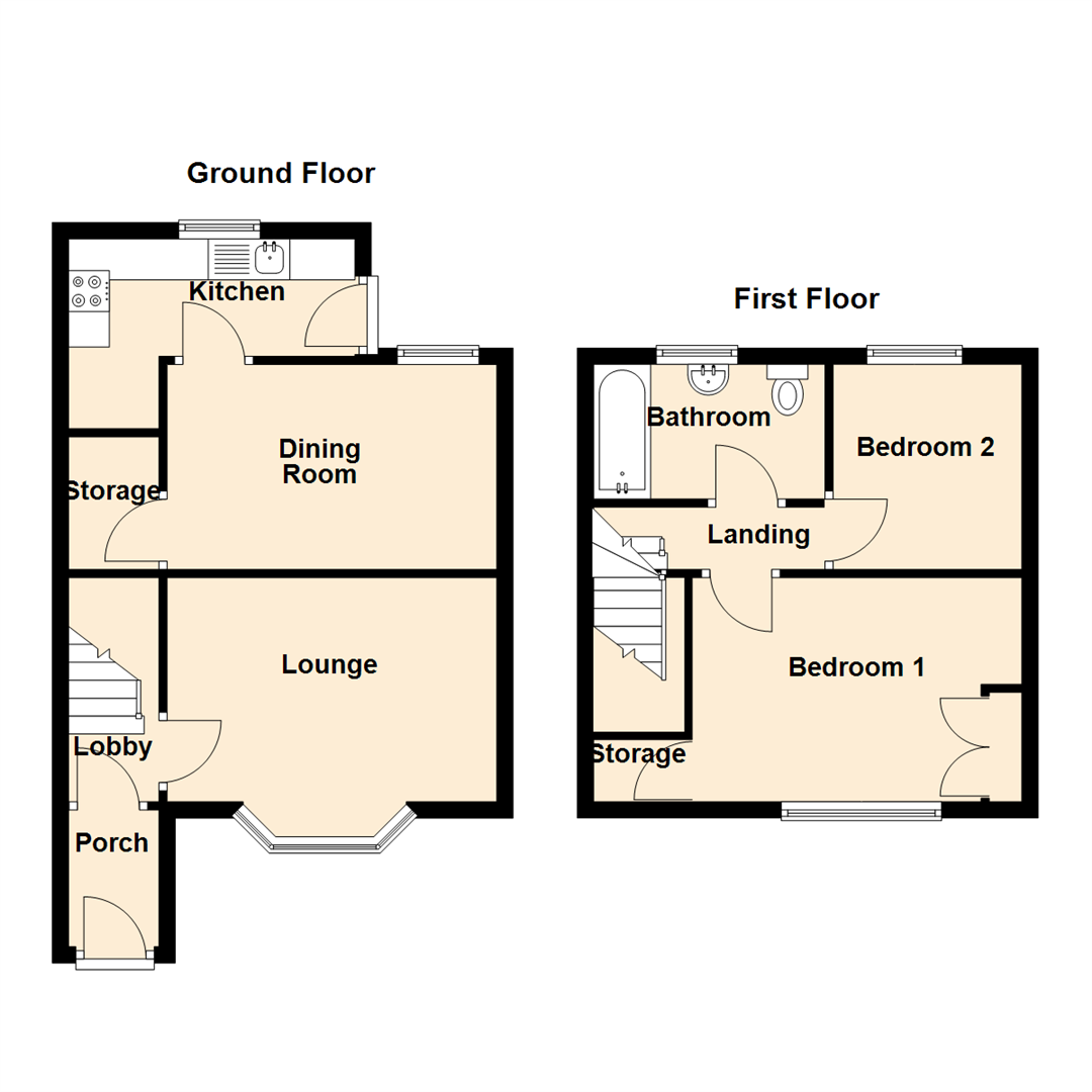 The property briefly comprises: - entrance porch and lobby, bright and airy lounge with feature fire and bay window, dining room with storage and a kitchen with fitted units and integrated oven and hob and access to the rear. On the first floor there are two double bedrooms and a modern bathroom WC with overhead shower. Further benefits include gas central heating and double glazing.