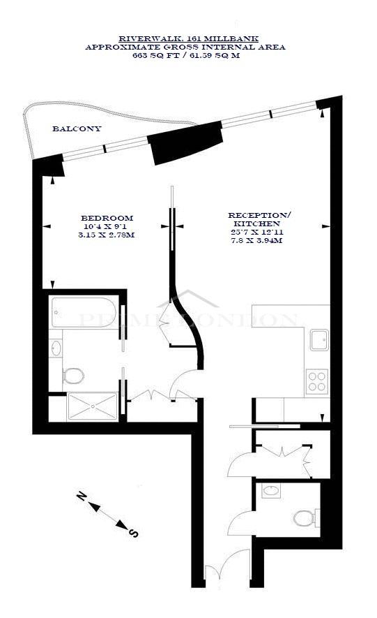 This spacious luxury one bedroom apartment of 663 sq ft / 61.59 sq m, with private balcony showcasing views of the River Thames, is available for chain free sale within the exquisite Riverwalk development through Prime London. The property also comes with a secure parking space.