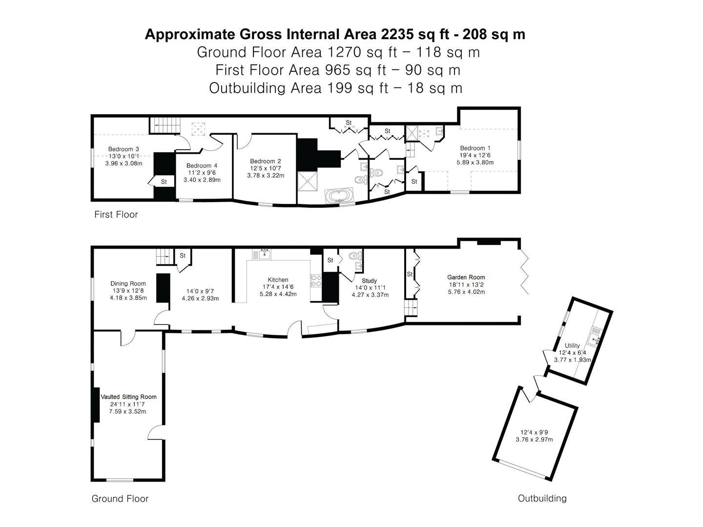 Outside - The property is approached via a gravelled driveway providing off-street parking for several vehicles. A pathway leads through the outbuilding to the front garden which is predominantly laid to lawn with a paved terrace. There is gated access to the rear of the property which features a sunken paved terrace adjoining the garden room with steps up to the garden which is predominantly laid to lawn with mature hedges bordering. There is a swimming pool with an adjoining pool house, a central pond with mature beds surrounding, a raised terrace with space for a hot tub and timber outbuilding with power and lighting connected. At the top of the garden is a paddock area.