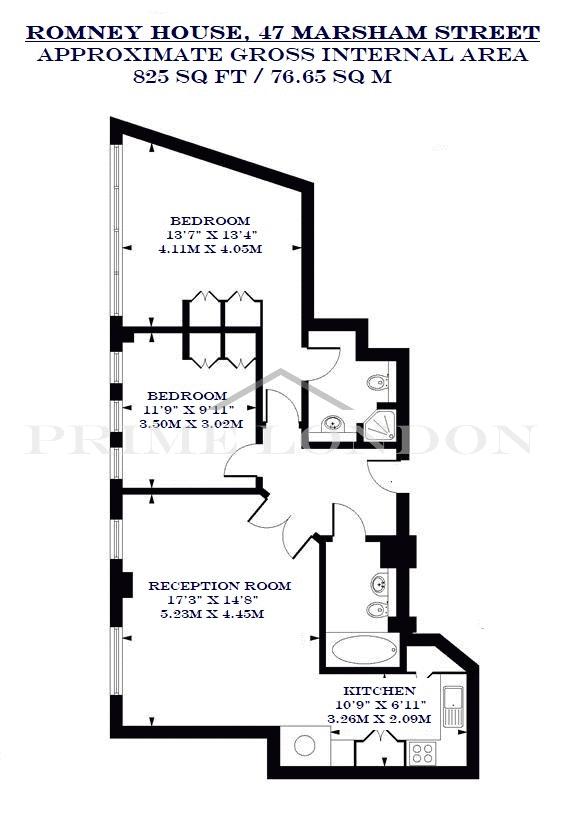 This modern and fully furnished 825 sq ft (76.65 sqm) two bedroom two bathroom apartment within Romney House is available to rent through Prime London. The property also comes with a parking space.