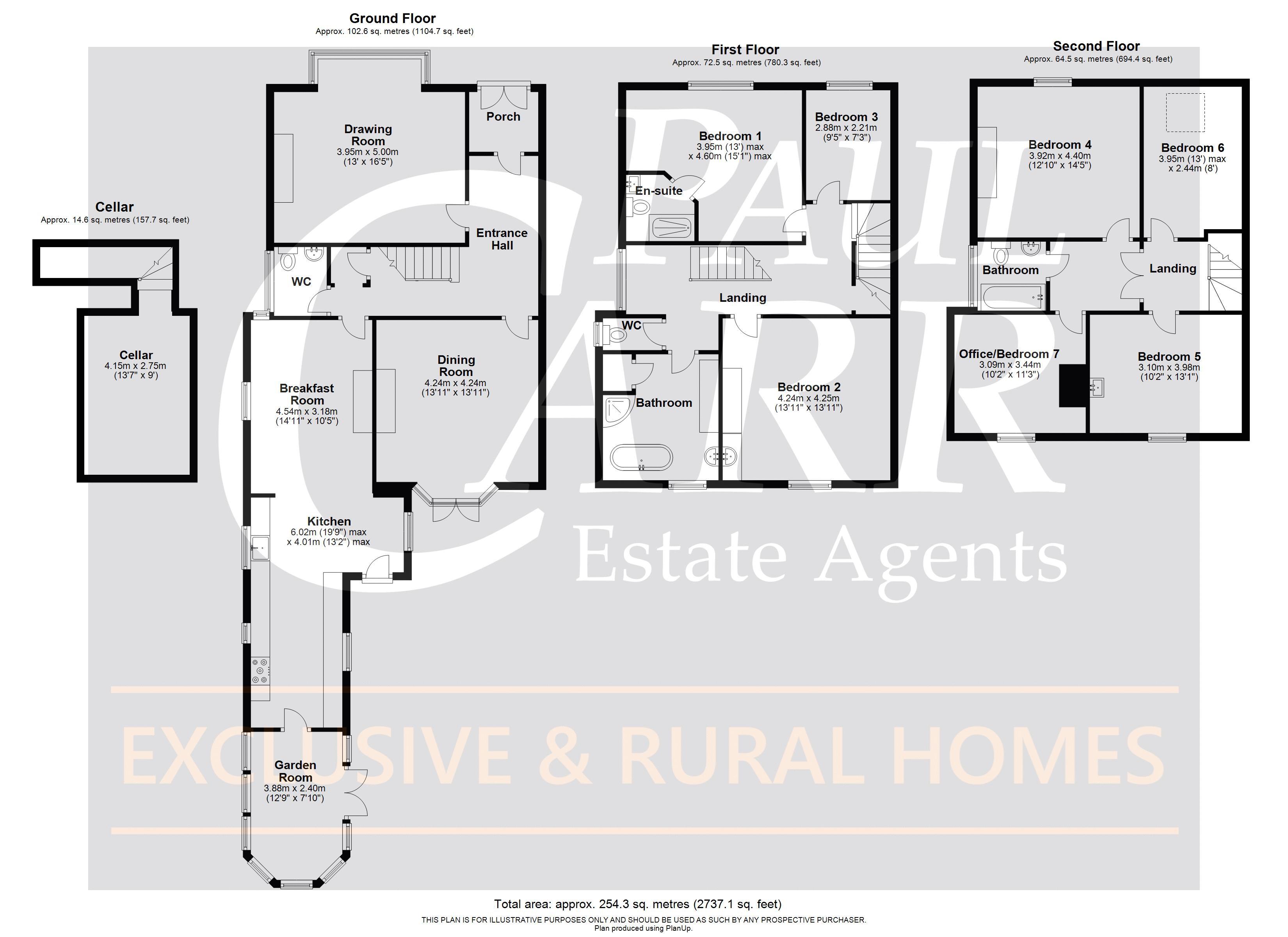 To the first floor there are three double bedrooms with one benefitting from an en-suite, whilst bedrooms two and three have use of the luxurious family bathroom with gorgeous roll top bath and a separate shower. The second floor has three further bedrooms along with a home office, as well as another bathroom. while offering lots of opportunities for guests, this space could be ideal for older children wanting some independence or alternatively, it could be converted into a fabulous principal bedroom suite.