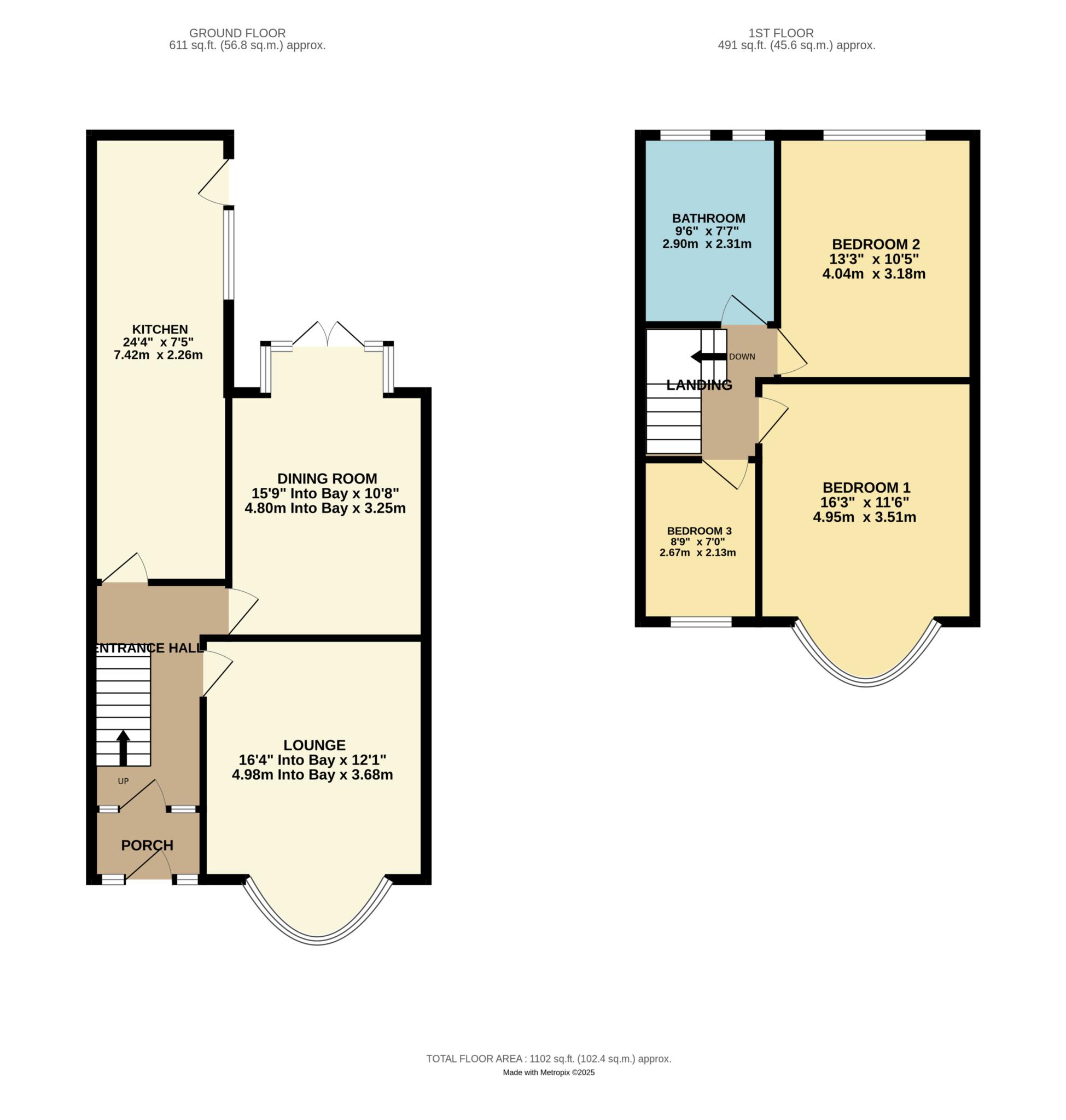 Bedroom One - 16'3" (4.95m) Into Bay x 11'6" (3.51m)