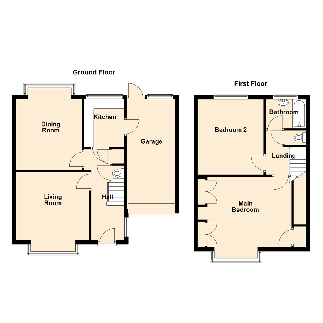 Briefly comprising to the ground floor: - entrance hallway with WC, spacious lounge with box bay window and feature fireplace, bright and airy dining room with feature fireplace, and kitchen with access to the garage. To the first floor there are two double bedrooms along with a bathroom and separate WC. Further benefits include gas central heating and double glazing.