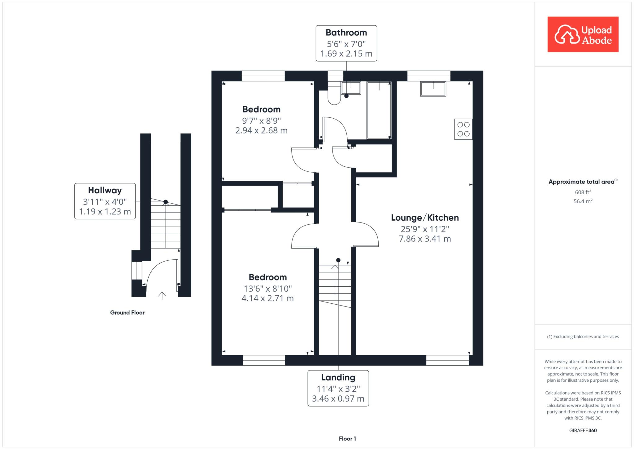 As you ascend the stairs, you`re greeted by a bright and inviting open plan lounge and kitchen area. Crisp white walls provide a clean, fresh backdrop, while the navy sofa with bold orange accents and striking feature wallpaper add a contemporary twist. This seamless space is perfect for relaxing, entertaining or simply unwinding after a busy day.