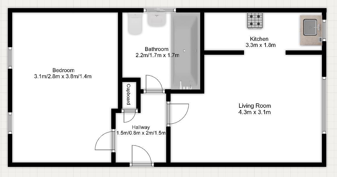 Accommodation comprises: Entrance hall, large lounge which is open plan to a gorgeous new fitted kitchen, a good size bedroom and a bathroom. The property is a good size and is also flooded with natural light.