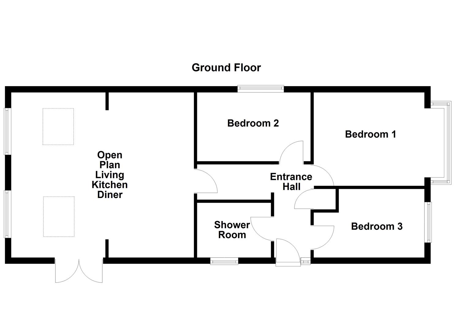 The property briefly comprises of the entrance hall with access to the bespoke fitted kitchen dining living room, the modern fitted shower room, three double bedrooms. Bedroom one benefitting from a large UPVC double glazed bay window. Outside, to the front, a sweeping tarmacadam driveway offers off-road parking for two vehicles, complemented by an attractive lawned garden with a central paved path, pebbled edging, and raised planted borders. A double cast iron gate to the side provides access to a further paved driveway, extending the off road parking and leading to the rear. The rear garden features a well maintained lawn with wood chipped borders and mature planting. Fully enclosed by timber fencing, it is ideal for children and pets. A paved path runs alongside the property to a timber shed and a gate returning to the front.