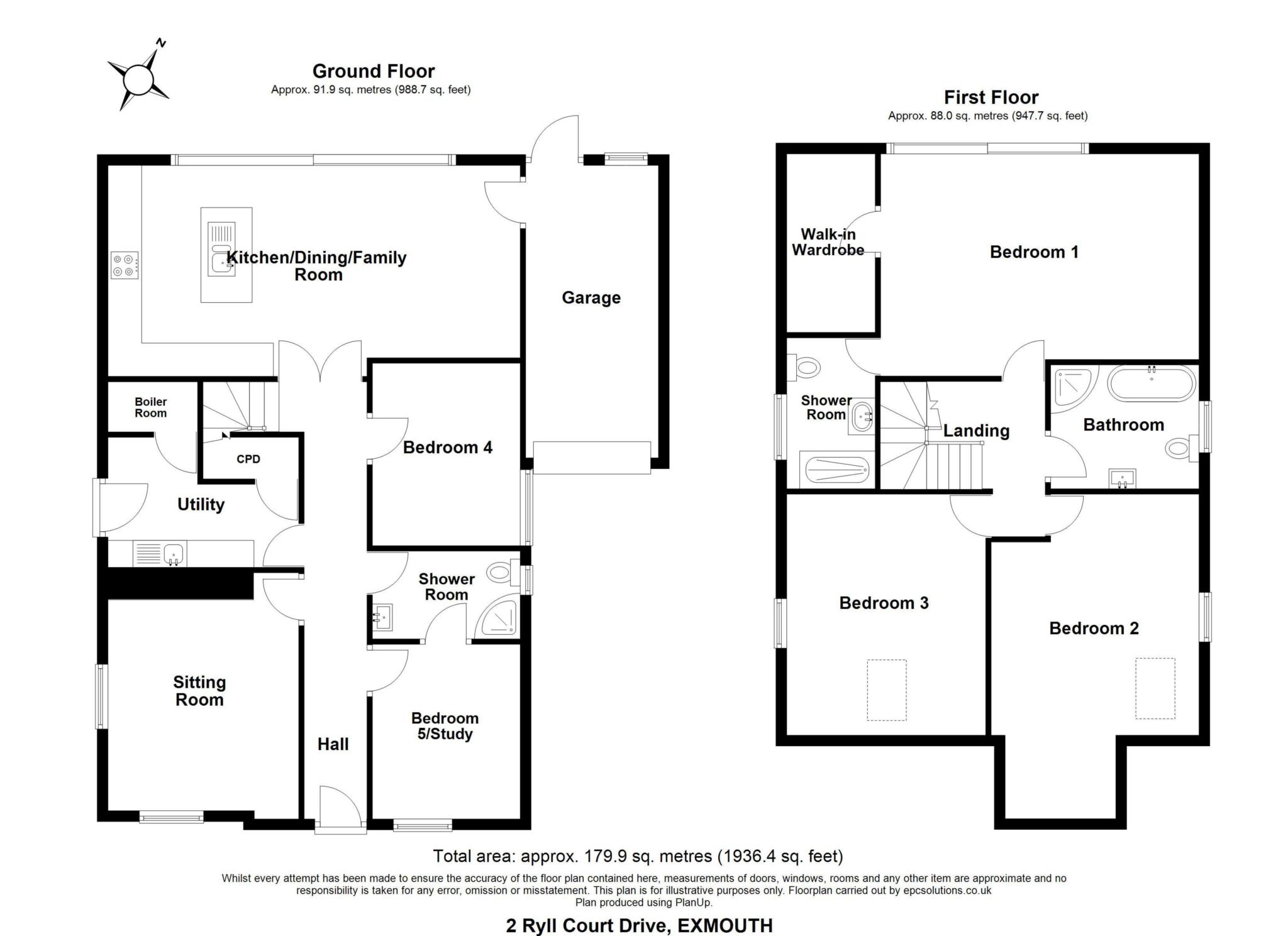 Situated within a sought after cul-de-sac that is close to Exmouth Town centre and having been extended and completely renovated by the current vendors is this 5 bedroom, 3 bathroom detached family home with stunning views of the Estuary from the rear. This double glazed property that has gas fired under floor central heating throughout the ground floor and infra red heating on the first floor, enjoys a adaptable range of accommodation. The ground floor comprises of an entrance hall, dual aspect living room, 2 bedrooms (could be utilised for other uses), shower room and a separate utility room. To the rear of the property on the ground floor is a incredible open plan kitchen / dining / family room that spans the width of the property and which has integrated appliances, matching island and large bi-folding doors that take full advantage of the views that are obtained from this property. On the first floor you will find a spacious master bedroom suite that has incredible views, a Juliet balcony, walk in wardrobe area and a stylishly finished en-suite shower room. Two additional double bedrooms and a stunning family bathroom that has a free standing bath and separate shower completes the first floor accommodation. To the front of the property is a gravelled driveway that provides off road parking for 2 / 3 motor vehicles and a single garage. To the rear of the property is a large enclosed garden. This property MUST be viewed internally to be able to fully appreciate that accommodation and views that it has to offer.