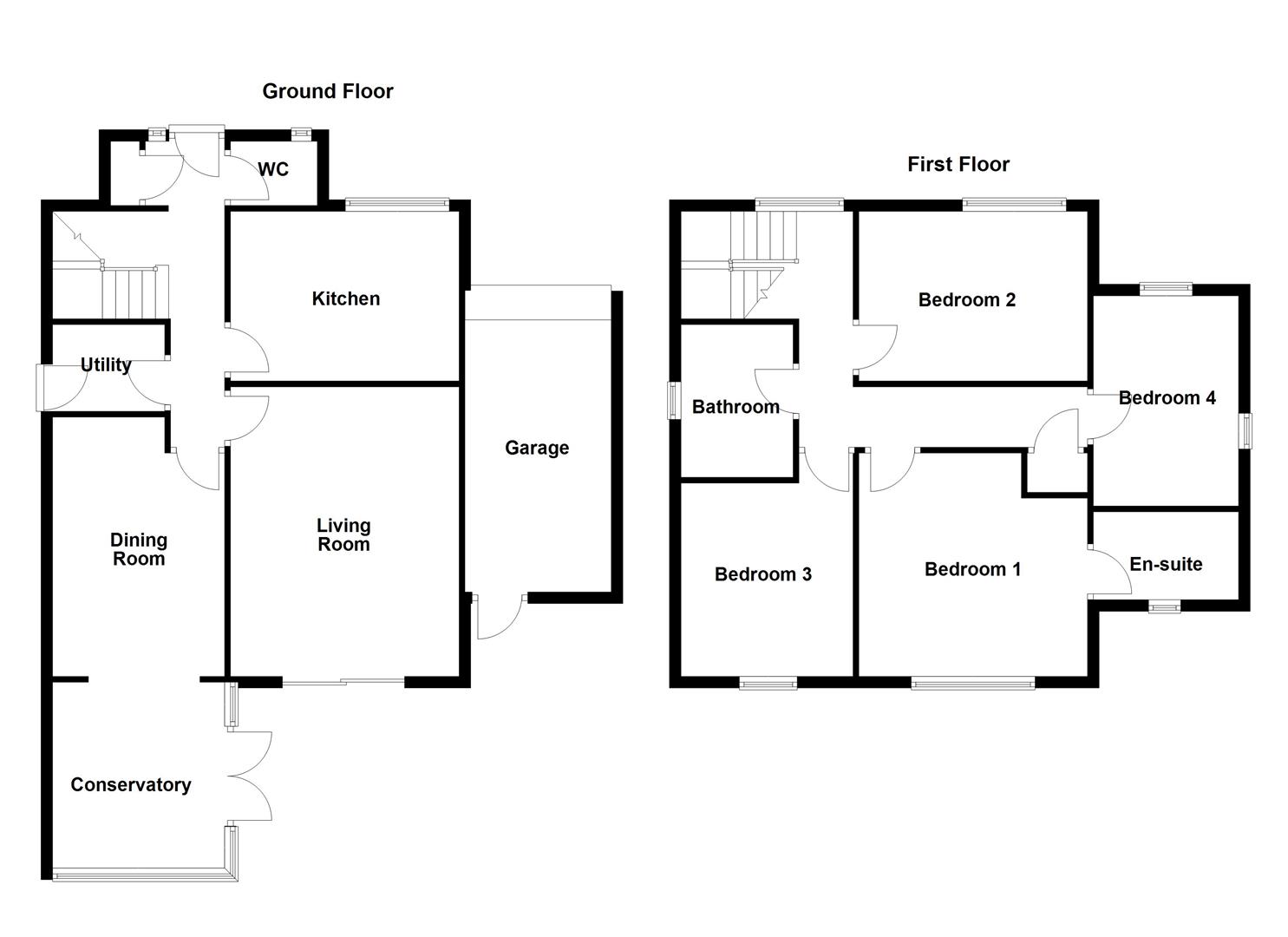 With a gas fired central heating system and double glazed windows, this charming family home features a welcoming entrance hall with a guest toilet and built in cloaks cupboard. A central hallway leads to a spacious living room with a feature fireplace and French doors opening to a rear patio. Additionally, there is a separate dining room with an archway into a conservatory, offering scenic garden and countryside views. The well fitted kitchen includes integrated appliances and a separate utility room. Upstairs, the principal bedroom enjoys stunning views and a high standard en suite, while three additional bedrooms share a modern house bathroom. Outside, a broad parking area leads to a single garage, with principal gardens at the rear, including a wide patio, level lawn, well stocked beds and a additional paved sitting area.