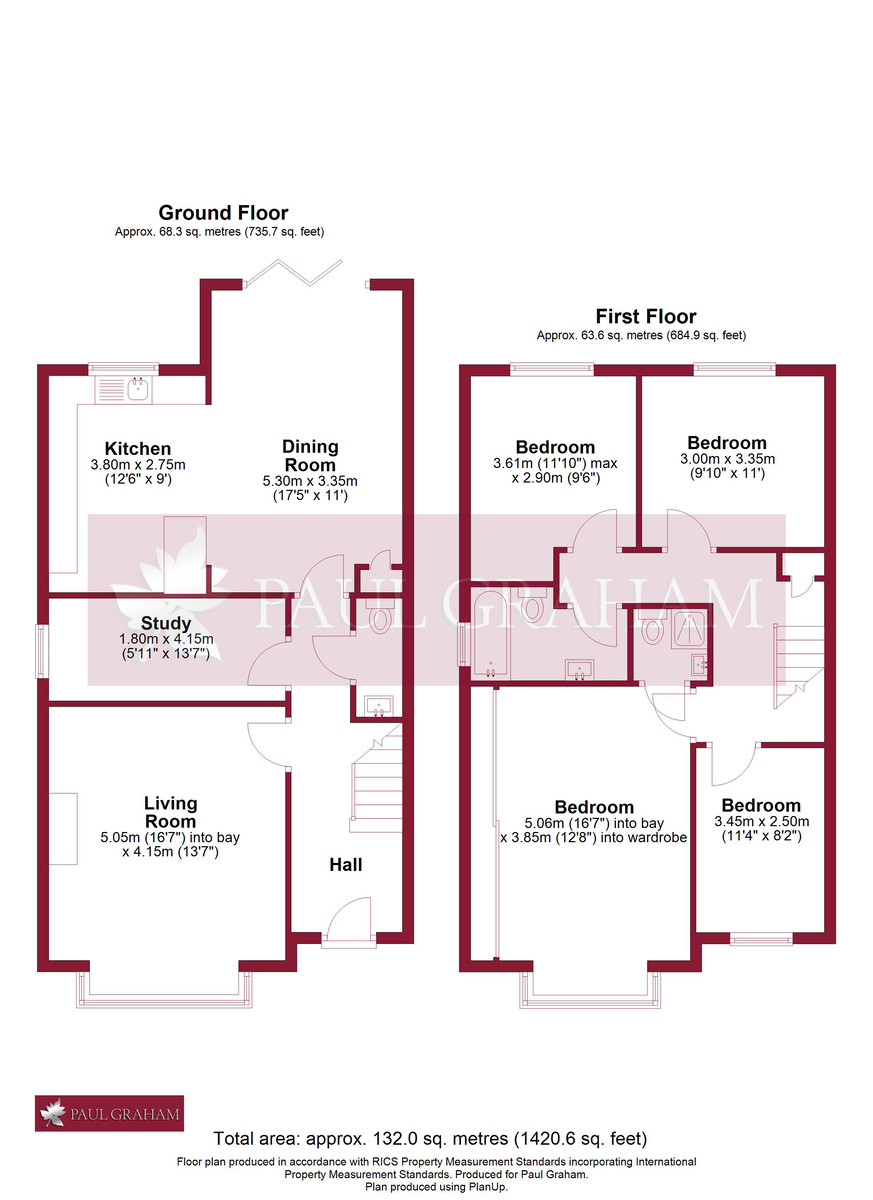 BEDROOM 1 16' 7" x 12' 8" (5.05m x 3.86m)