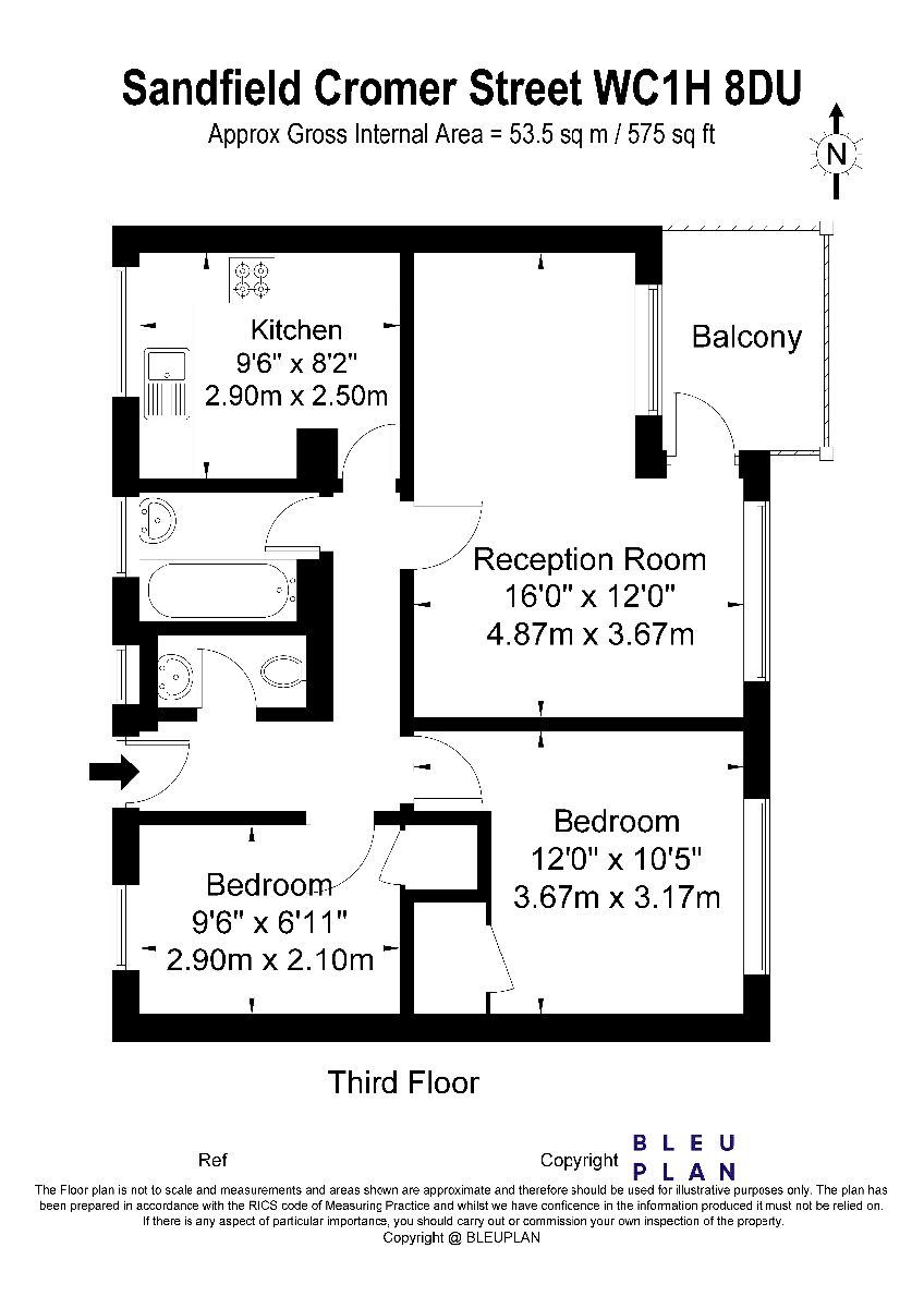 The flat comprises of a spacious, bright reception room that has been converted to the third bedroom.