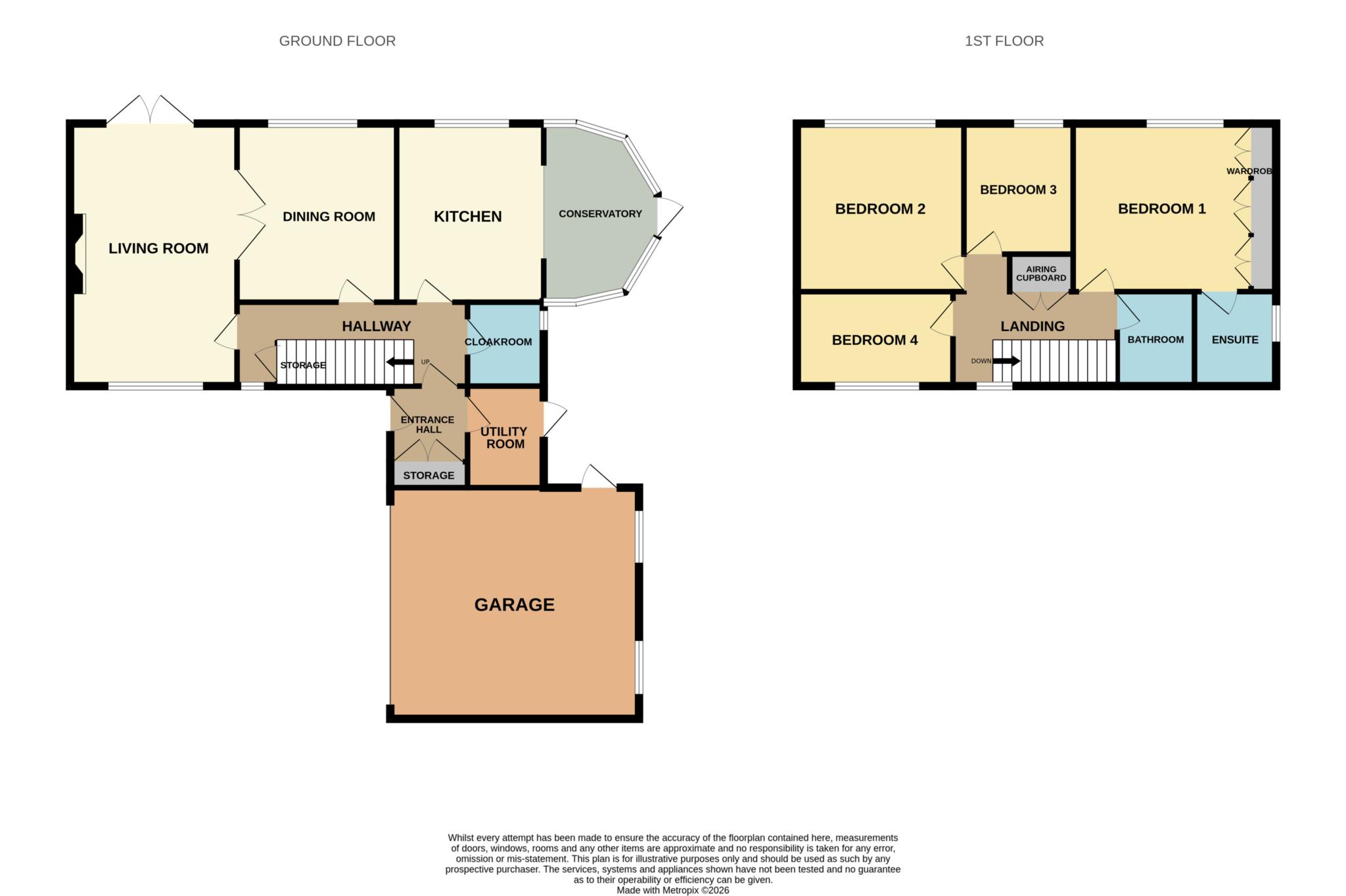 Upstairs, four immaculately presented bedrooms are arranged off a spacious landing, three of which are comfortable double rooms. The principal bedroom benefits from fitted wardrobes and a well appointed en-suite shower room, whilst the remaining bedrooms are served by a modern family bathroom.