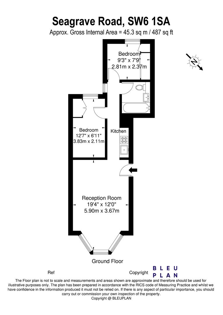 The property features a bright reception room with bay window and wood flooring, there is an equipped galley kitchen, 2 bedrooms and a family bathroom.