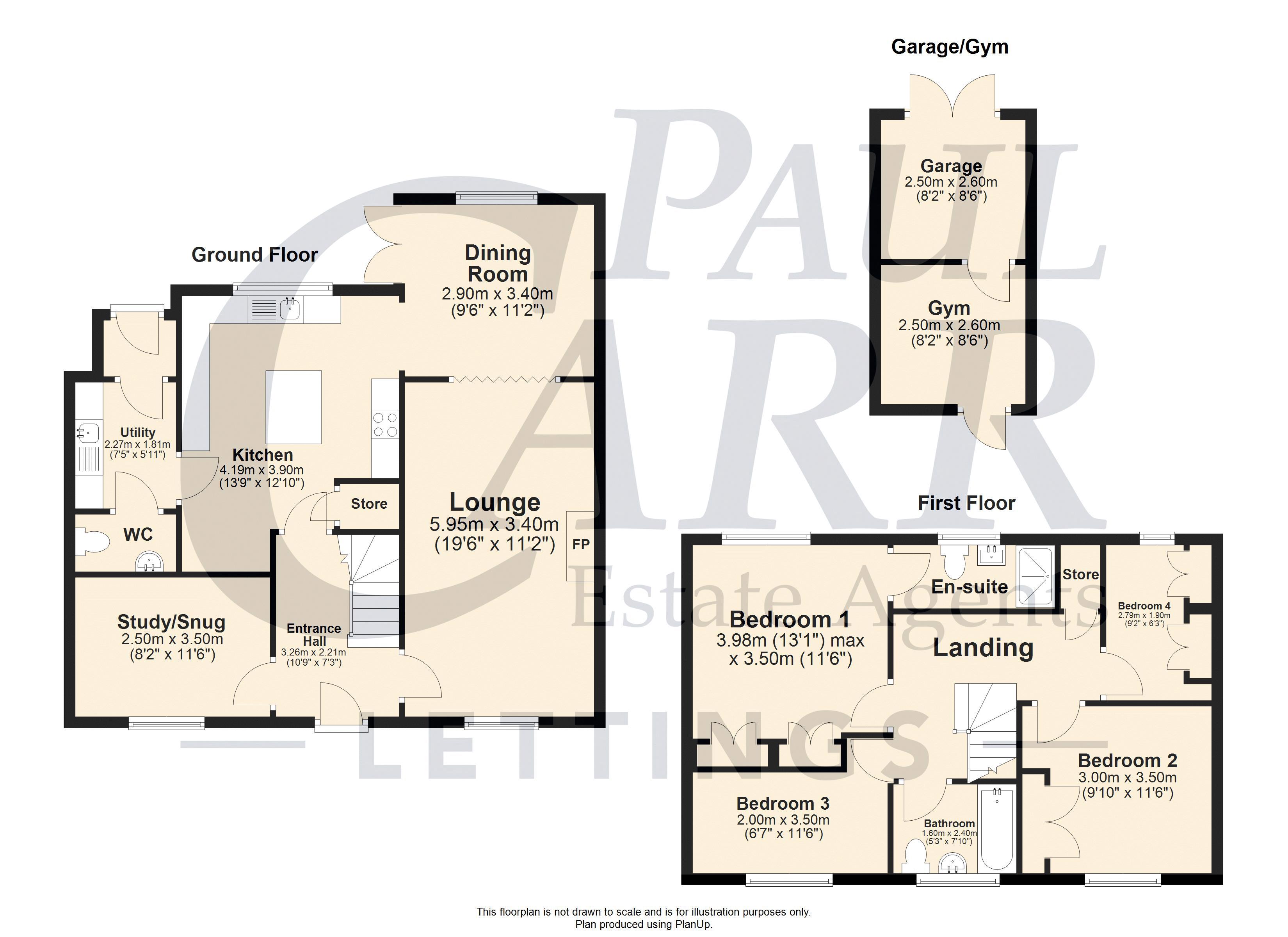 On entry to the property, a roomy entrance hall provides stair access to the first floor and access to several of the ground floor living spaces. Overlooking the front of the property, a versatile snug/study offers additional living space, complemented by a spacious and cosy lounge. To the rear of the lounge and accessible via elegant folding doors, the dining area features a bright skylight, perfect for hosting. The impressive and modern kitchen features a fitted island, a handy store/pantry cupboard, an array of wall & base units, and an abundance of appliances, namely: five ring gas hob, integrated double oven, extractor hood, wine fridge, dishwasher and American-style fridge freezer. A handy utility area to the side of the kitchen provides access to the rear garden, and spaces/plumbing for a washing machine & tumble dryer. Completing the ground floor is a convenient downstairs WC with wash hand basin.