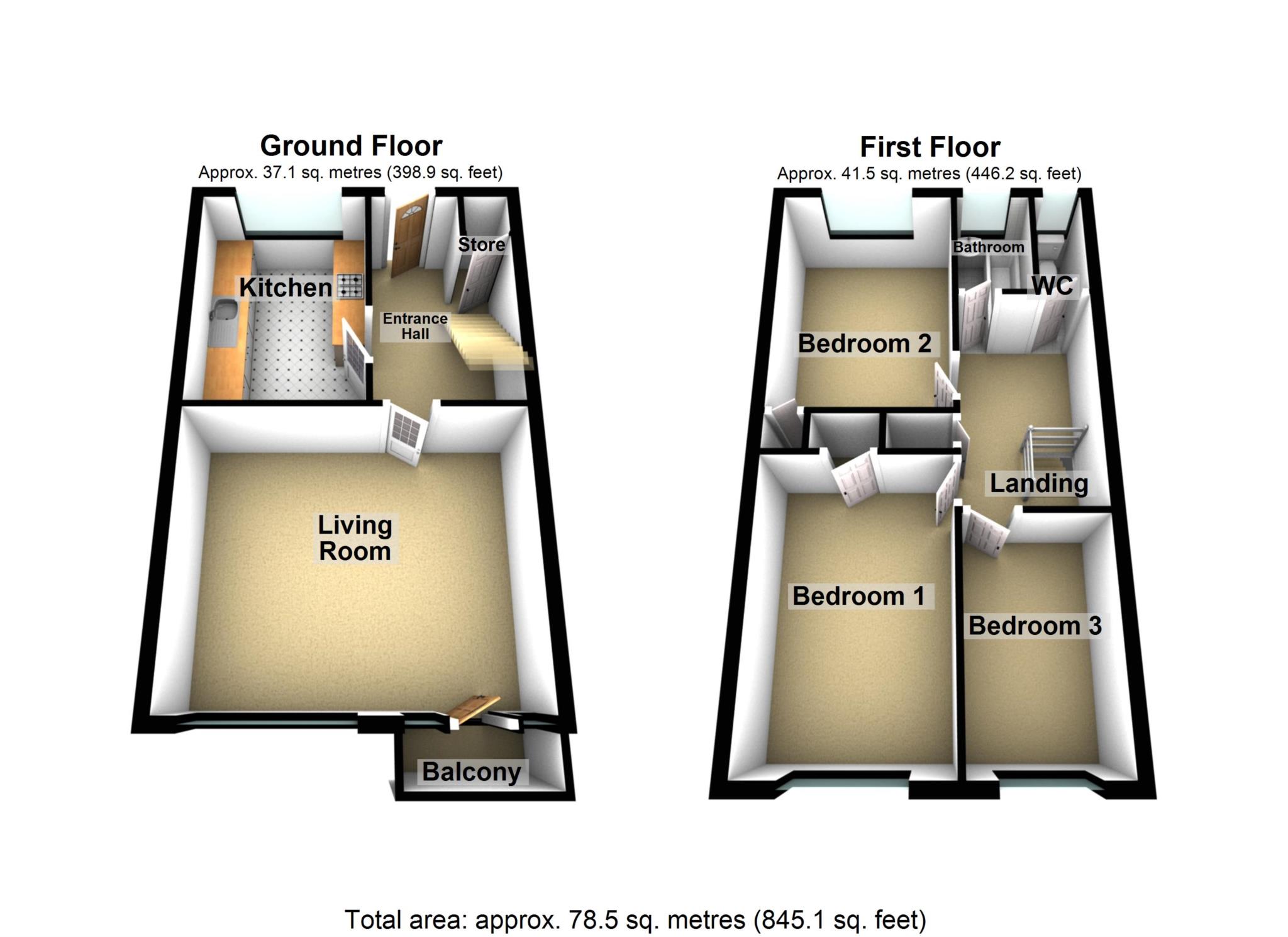 The ground floor provides you with a good-sized Kitchen and a 15ft Living Room with doors leading to a Balcony. Upstairs there are 3 good sized Bedrooms, the family Bathroom and a separate W.C.