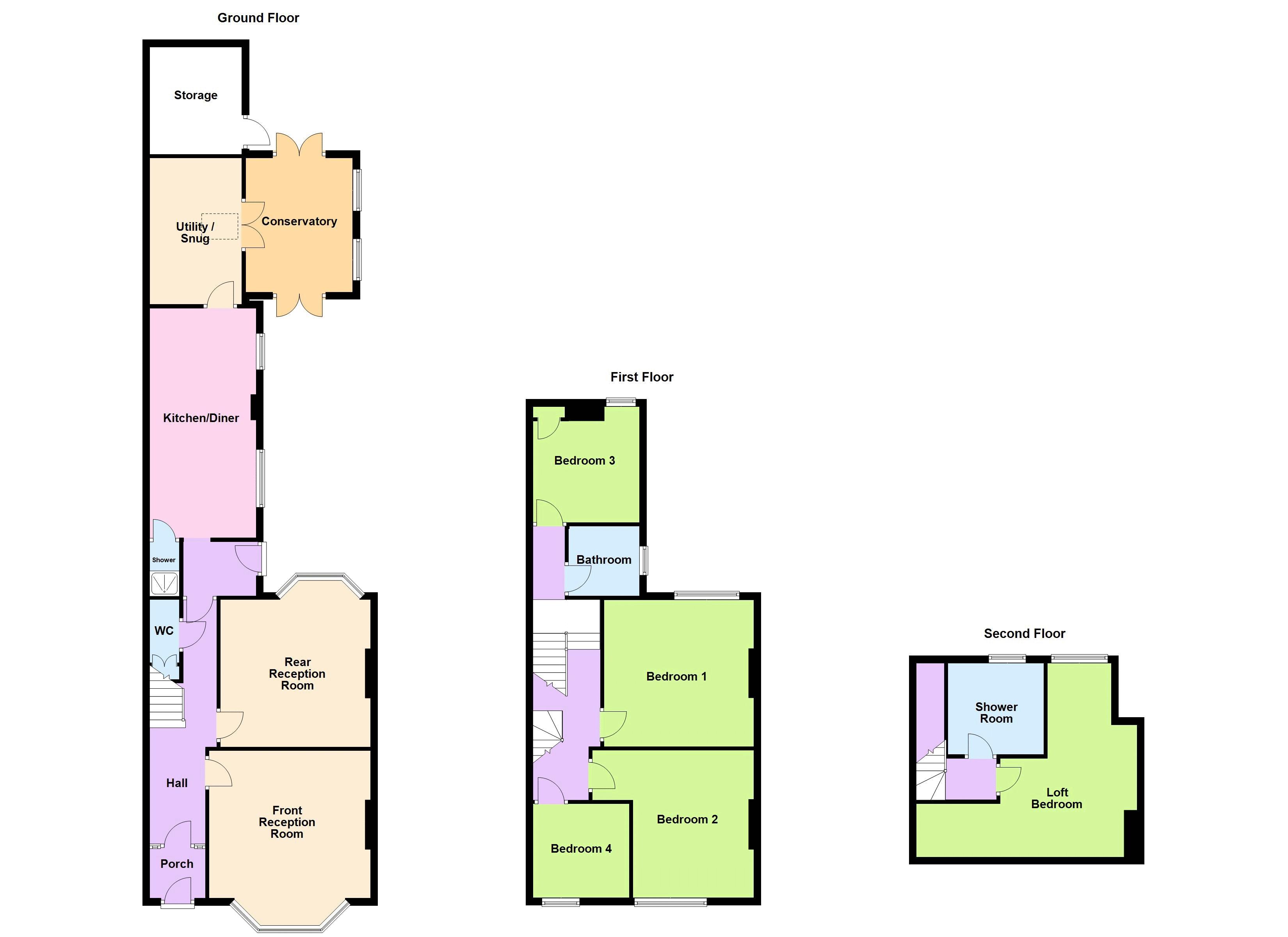 To the first floor there are four bedrooms - three of which are excellent doubles (the largest featuring wardrobe space) and a single - and an appealing bathroom with roll-top bath, WC and wash basin. To the second floor there is a generous loft bedroom and an additional shower room. <br />