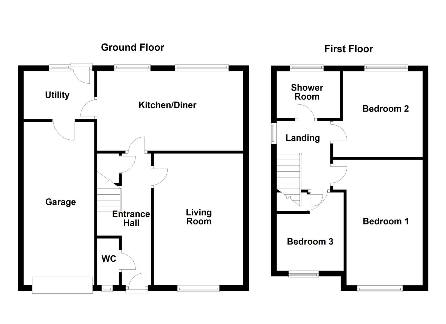 The property briefly comprises of the entrance hall, providing access to the downstairs W.C., living room and the open plan kitchen dining room. From the kitchen dining room there is access to the utility room which provides further access to the integral single garage which completes the accommodation on the ground floor. Upstairs, to the first floor landing, there is access to three good sized bedrooms and the house shower room. Bedroom three benefitting from a built in wardrobe. Outside, to the front of the property a concrete double driveway offers ample off road parking and leads to the integral single garage. There is also a low maintenance planted border with bushes and a concrete path running along the side of the property to the rear. To the rear of the property, there is a spacious patio area, ideal for outdoor dining and entertaining, with railway sleeper edged borders. This leads to an attractive lawn with pebbled edges and a tiered timber deck beneath a wooden pergola. The garden is fully enclosed by timber fencing, making it ideal for children and pets.