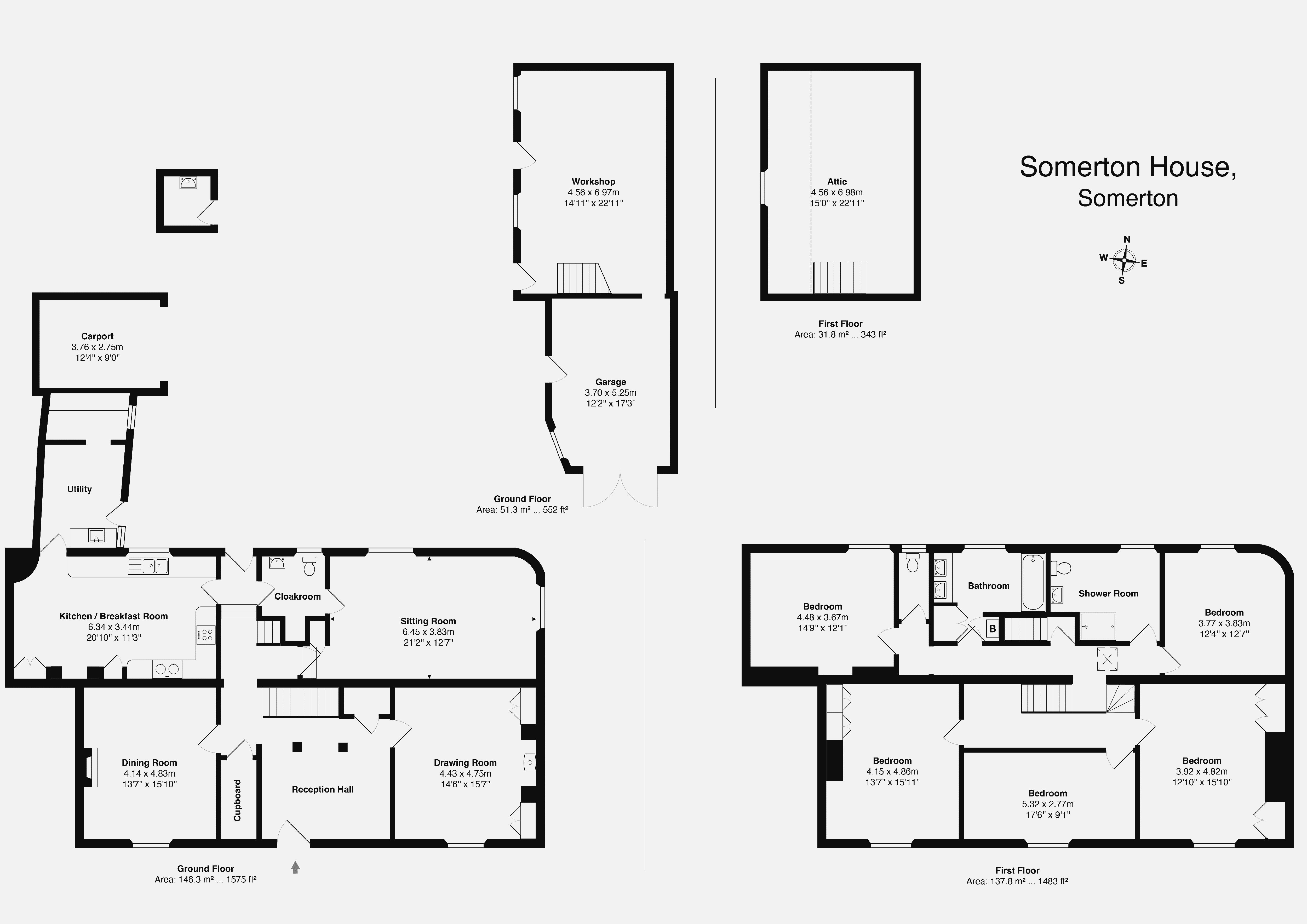 A charming Georgian townhouse in a quiet residential area of the small market town of Somerton. It has generous accommodation, vey useful outbuildings (with scope) and a large mature garden of over half acre. The accommodation includes a hall, cloakroom, 3 reception room, kitchen, utility room, coat & boots room, 5 bedrooms, 2 bathrooms and an accessible loft providing storage.Vehicular access to a rear courtyard flanked by a coach house and other buildings beyond which is a wonderful garden.