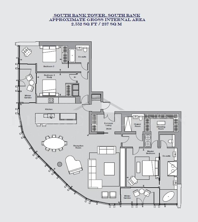 This large 2,552 sq ft / 237 sq m apartment benefits from having a bright, impressive wrap around reception room with floor to ceiling windows, modern and fully fitted kitchen which is exceptionally well finished with ultra modern appliances, and a two large winter gardens.