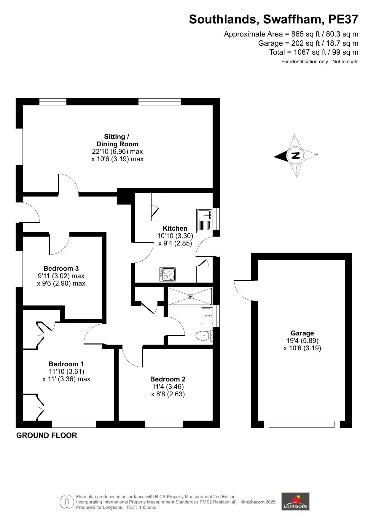 Garage - 19'4" (5.89m) x 10'6" (3.2m)