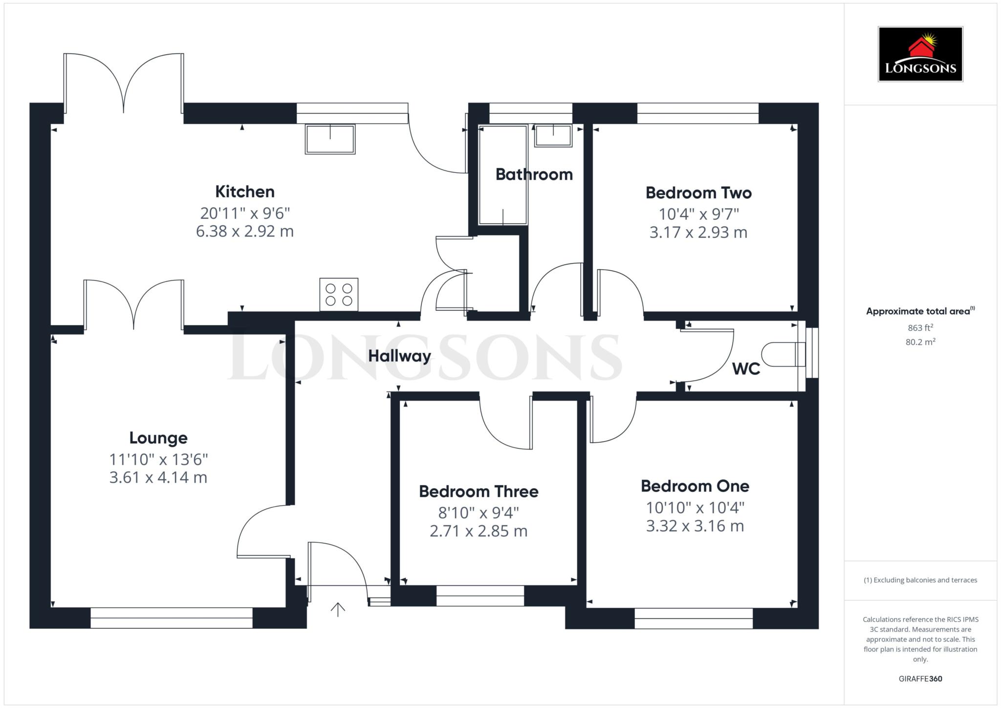 Bedroom Two - 10'6" (3.2m) x 9'8" (2.95m)