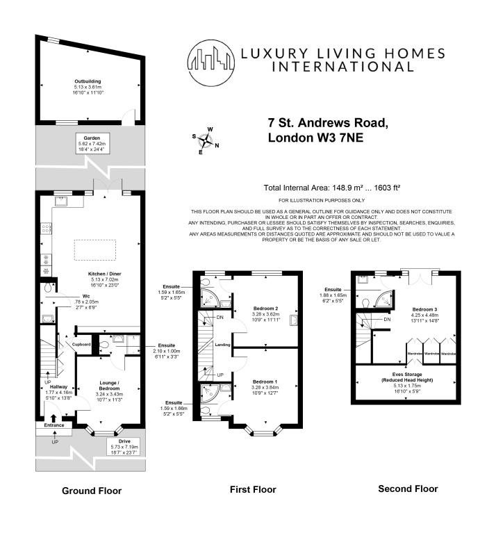 The ground floor is made up of a bedroom with ensuite, large open plan kitchen diner which leads directly onto the garden. The garden benefits from a large outbuilding.