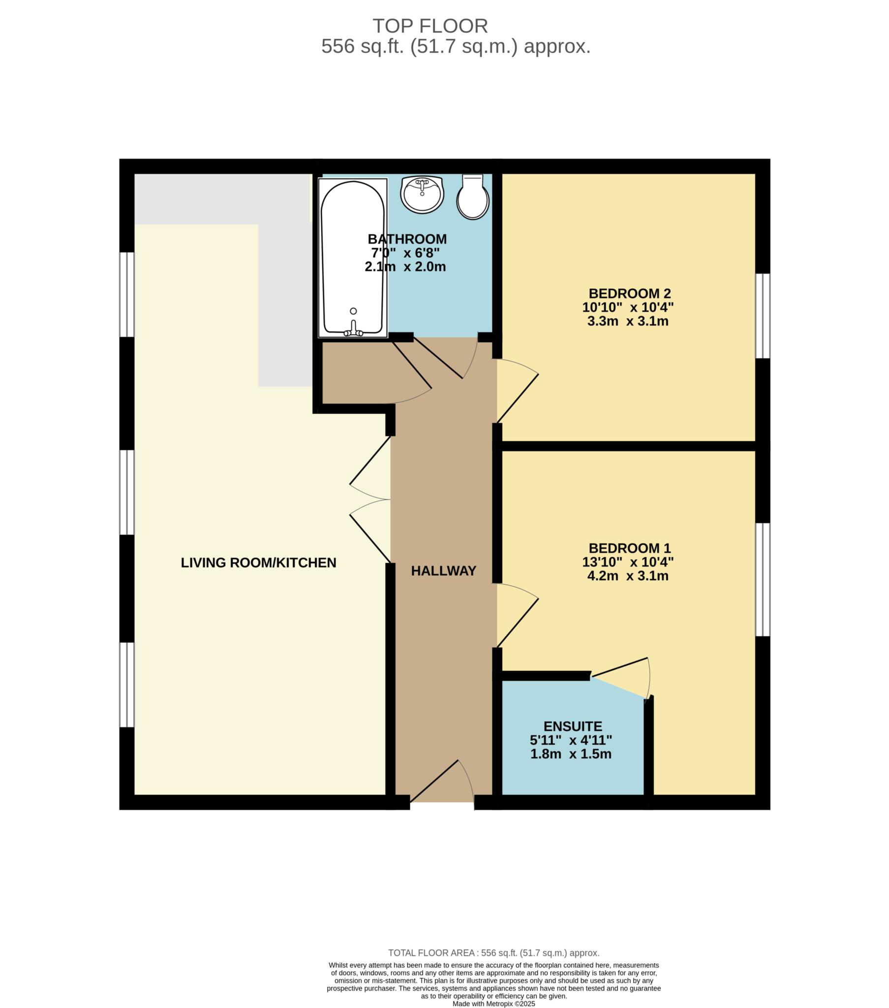 This superb, bright, and airy two-bedroom top-floor apartment is presented in excellent condition and offers a modern living experience. The spacious open-plan living room and kitchen are designed for contemporary living, featuring integrated appliances for added convenience. The apartment also includes a stylish and well-appointed bathroom with a contemporary suite, and two generously sized double bedrooms. The master bedroom benefits from its own en-suite shower room, offering privacy and comfort.