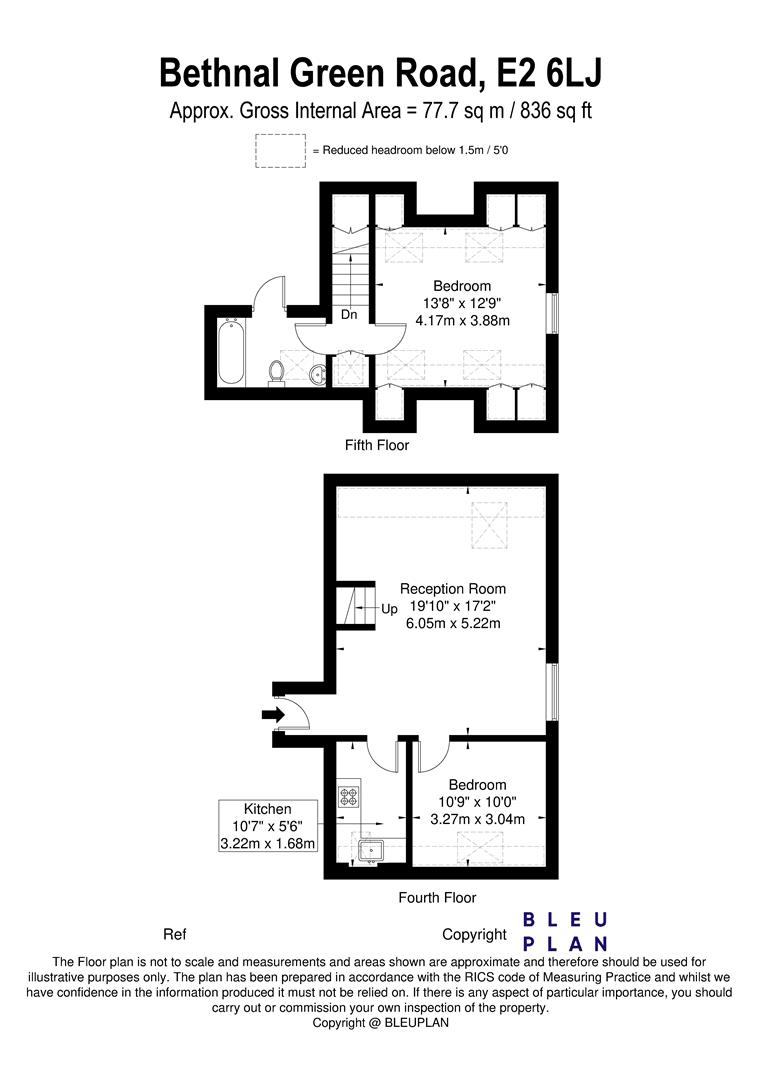 There is a sleek, modern fitted galley kitchen, a downstairs bedroom and an open staircase leading to the to the top floor of the apartment, set in the eves. The top floor features a lovely, contemporary fitted bathroom, storage facilities and the master bedroom with built in storage, four further Velux loft windows and another original church window.