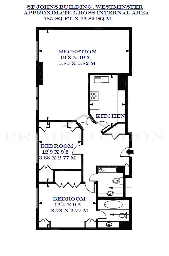 AVAILABLE NOW. This spacious and bright two-bedroom, two bathroom apartment, offers a total of 785 sq ft (72.89 sqm) internally of this luxury development in the heart of Westminster, is available to rent through Prime London.