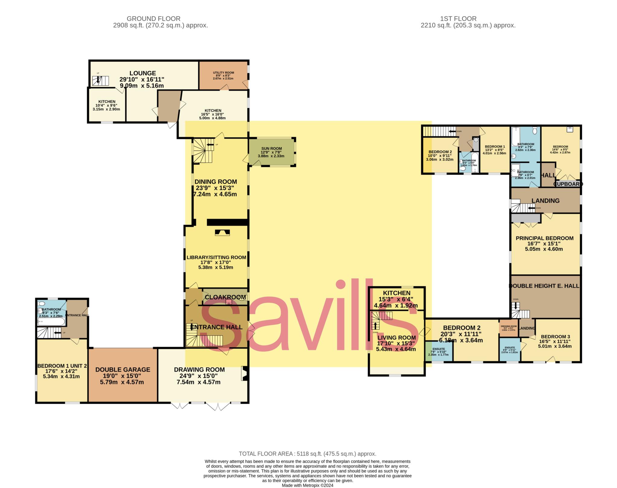 The heart of the main house is an impressive double height entrance hall, welcoming you into a spacious interior filled with possibilities. The ground floor features an elegant drawing room with a fireplace and French doors that open to a west facing garden, bathing the space in natural light. Another highlight is the grand sitting room/library, which offers generous proportions and views over the scenic grounds.