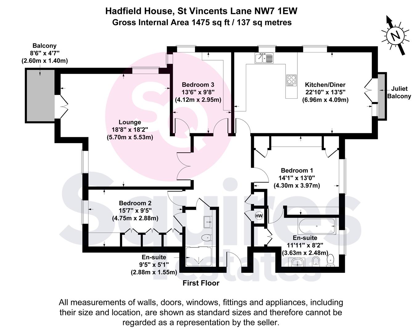 **CHAIN FREE** A fantastic, newly decorated 3 double bedroom, 2 bathroom apartment situated within this luxury gated development in Mill Hill Village. Located on the first floor (lift) the property boasts 1475 sq ft of accommodation and features an 18ft reception room with direct access to a private balcony with green views. Further benefits include a 22ft kitchen/diner with Juliet balcony, a large en-suite bathroom to the master bedroom, fitted storage to all bedrooms, 2 secure parking spaces with EV charging point, extensive communal gardens, a communal storage room and a porter.