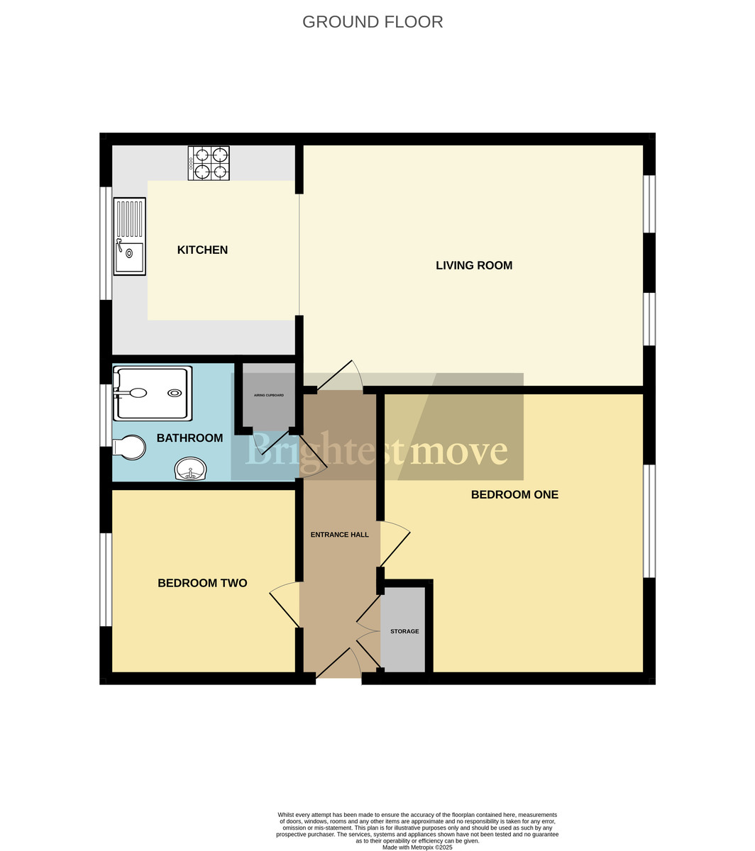 The accommodation briefly comprises a welcoming entrance hall, two well-proportioned double bedrooms, a bright and airy living room opening seamlessly to the modern fitted kitchen, and a stylish shower room. Additional cupboard storage can be found off the hallway.