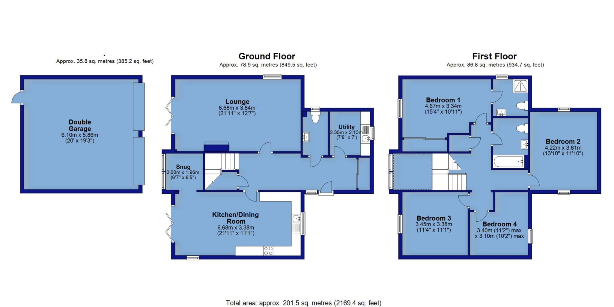 To the ground floor, a spacious and welcoming entrance hall leads off to all rooms, the kitchen/dining room fitted with a stylish range of cupboards & drawers and integral appliances of electric oven & induction hob, fridge/freezer and dishwasher; this is great social space further enhanced by a snug with double height ceiling and feature window.