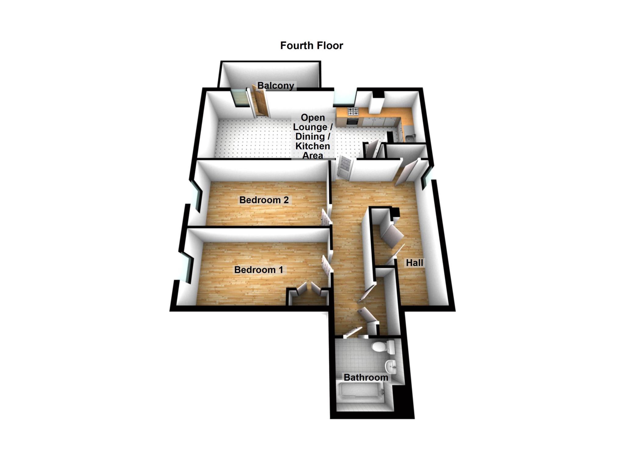 Once you are past the Video Entry phone system you will find a well-kept communal hall, from here you can take the lift or stairs to your floor. Step inside your apartment to find a wrap round Hallway with lots of handy storage, 2 Double Bedrooms, a Large Bathroom, 30 ft Open Plan Lounge / Dining / Kitchen Area complete with integrated appliances. From this room you also have access to the 14 x 5 Foot Balcony which in turn enjoys a panoramic outlook.