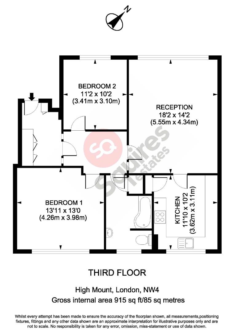 Bedroom 1: - 13'11 x 13'0 - Windows, radiator.