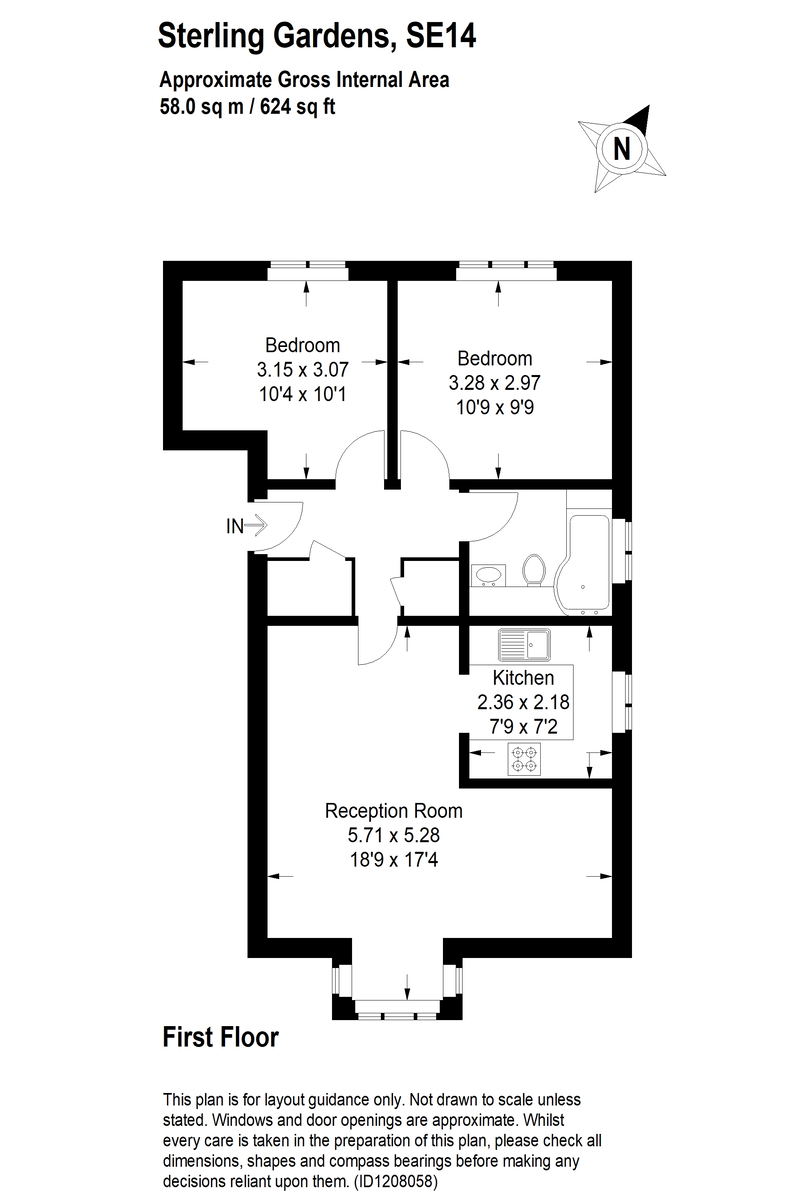 It benefits from a separate Kitchen, two decent sized bedrooms and a large eat-n lounge, big enough for a dining table.