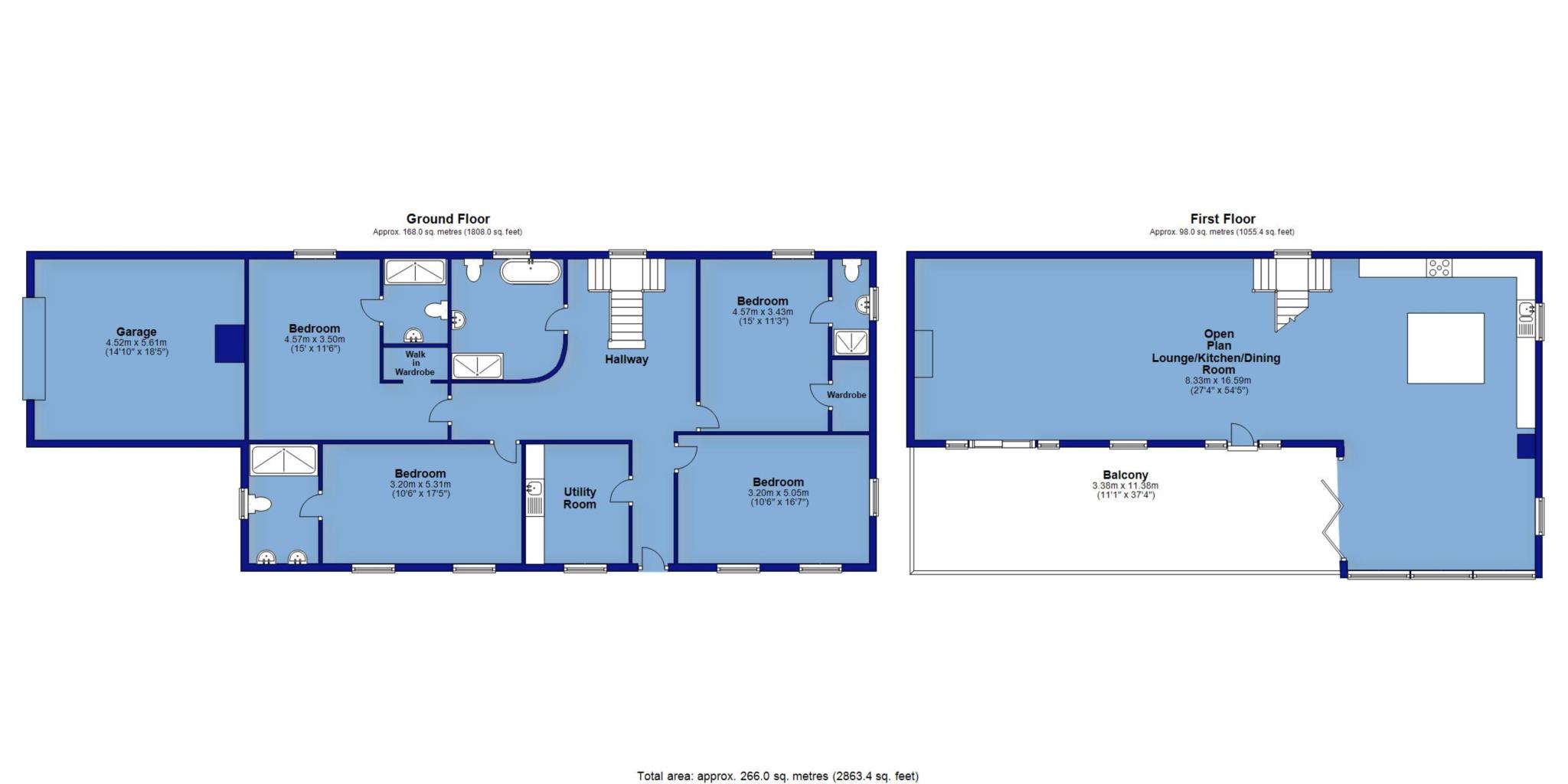 Occupying the first floor is a truly breathtaking living environment. Spanning an impressive 54` x 27`, the L-shaped open-plan lounge, kitchen, and dining area forms the heart of the home.