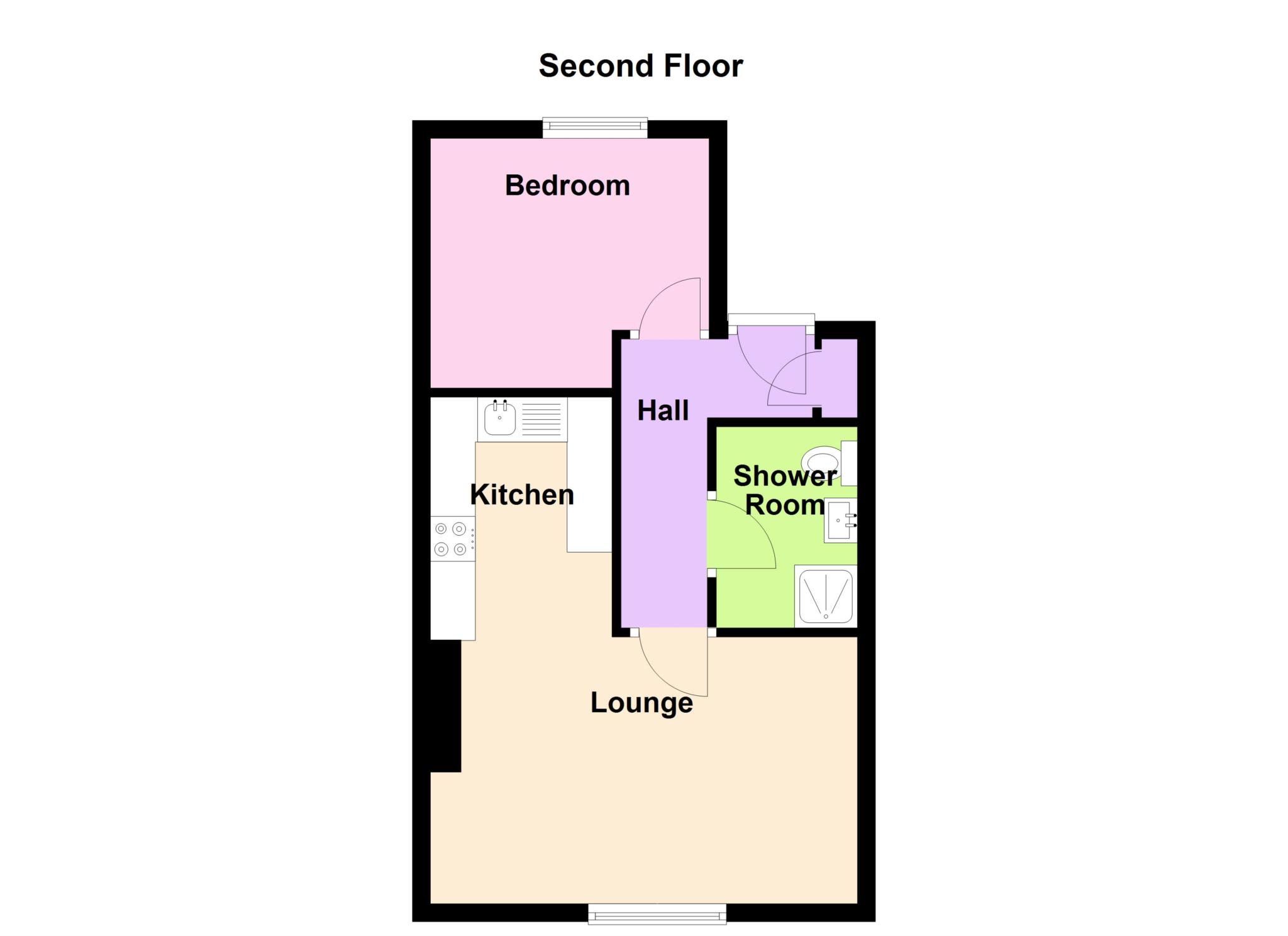 1 bed top floor flat located in Stoke Road close to amenities and within easy reach of Town Centre. The lounge has a kitchen area off.