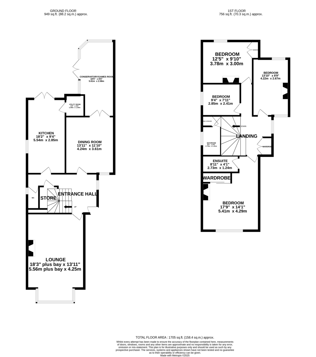 CONSERVATORY/GAMES ROOM 18' 5" x 8' 6" (5.61m x 2.59m) With windows to the side and rear elevations, tiled floor, radiator and French doors to the rear garden.