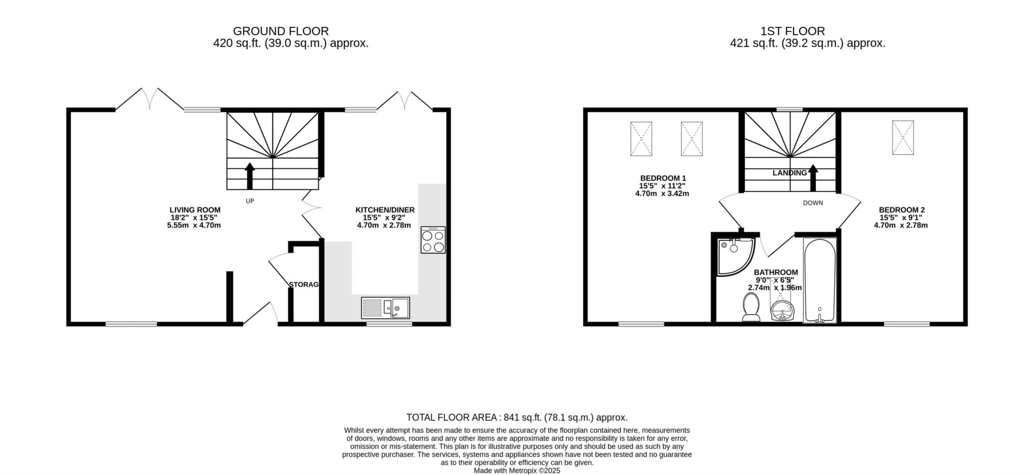 Upstairs there are two evenly sized large double bedrooms, both set into the eaves. Between the bedrooms is the modern bathroom with separate shower cubicle and bath.