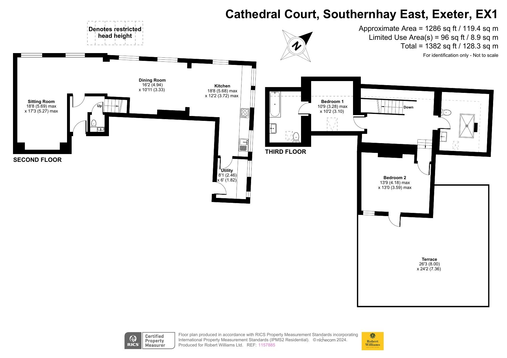 Cathedral Court is accessed from Southernhay East with communal front door and entrance lobby leading to the lift and stairs. The apartment, with 1380 sqft of accommodation, is situated on the second floor. The front door to the property leads to an entrance hallway with WC, stairs to the top floor and the entrance to the living area. The living room/dining area/kitchen is one large open plan space, perfect for modern living and entertaining. The kitchen is equipped with integrated appliances including refrigerator, freezer, washing machine, dishwasher and induction hob with extractor above. Beyond the kitchen is a utility room which is an ideal storage area and has a rear door to the communal hallway.