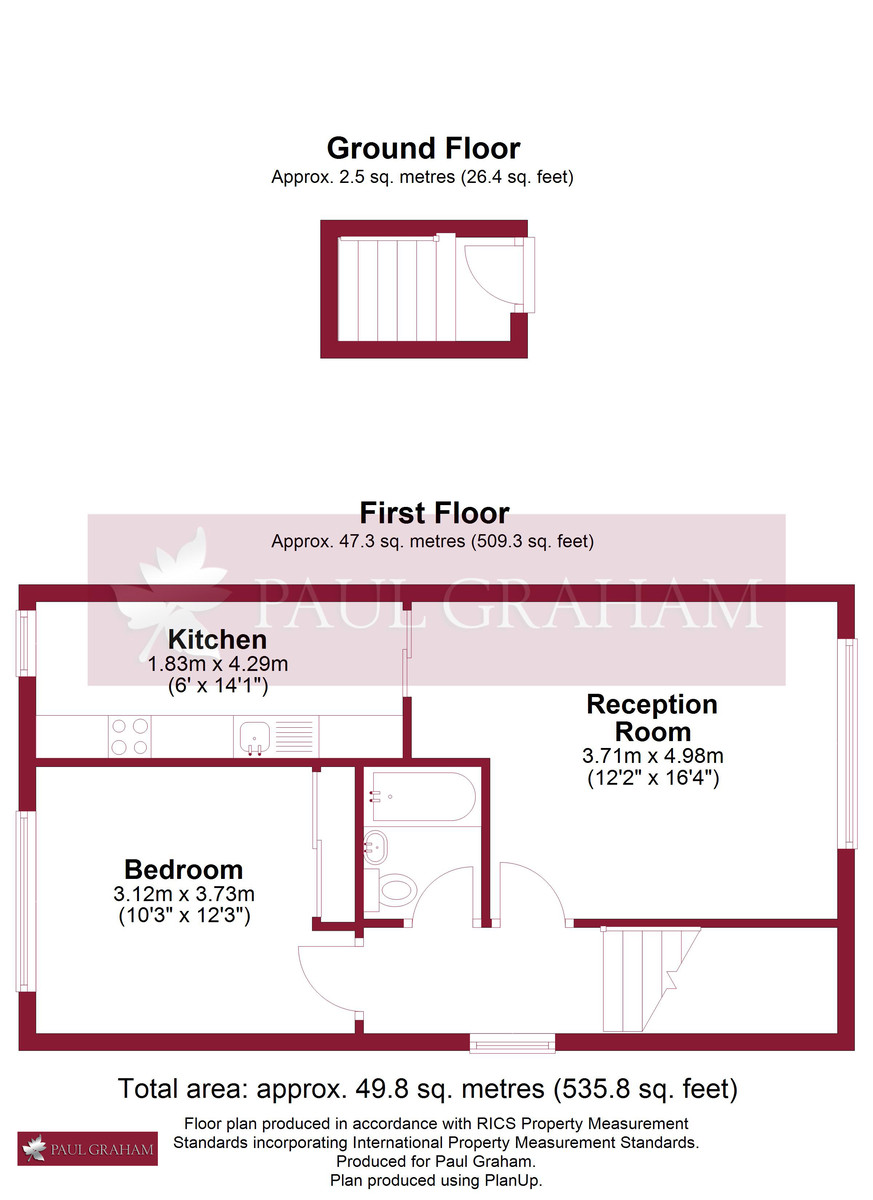 Details - Paul Graham are pleased to market this well presented 1 bedroom 1st floor maisonette. The property has its own entrance with stairs up to the 1st floor, a good sized reception room leading to the kitchen, a white suite bathroom and a double bedroom to the rear. Situated on a quiet residential cul-de-sac, with off street parking and offered to the market with no chain.