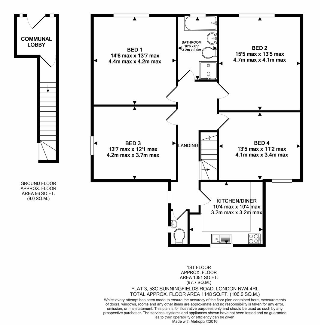 Fantastic size, 4bed apartment, offering x4 very large, double bedrooms, eat in kitchen, separate w/c, bathroom with shower & bathtub. The flat can also be used as a 3 bedroom with a lounge. Available 8/9/2025 & furnished.