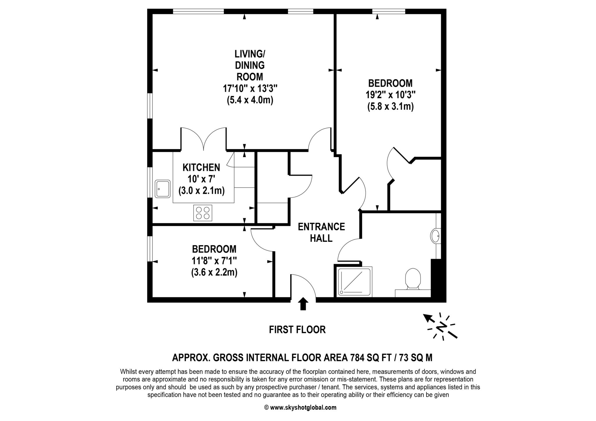 As soon as you enter the apartment, you are immediately aware of how bright and spacious it is, with the living-room being dual aspect and further light coming from the window in the kitchen. Situated on the first floor, this two-bedroom corner apartment is being offered in excellent condition throughout. Comprising a modern fully fitted kitchen, a fitted and tiled shower room, a master bedroom with walk-in wardrobe, a second bedroom, and wide hallway off which there is a large storage cupboard.