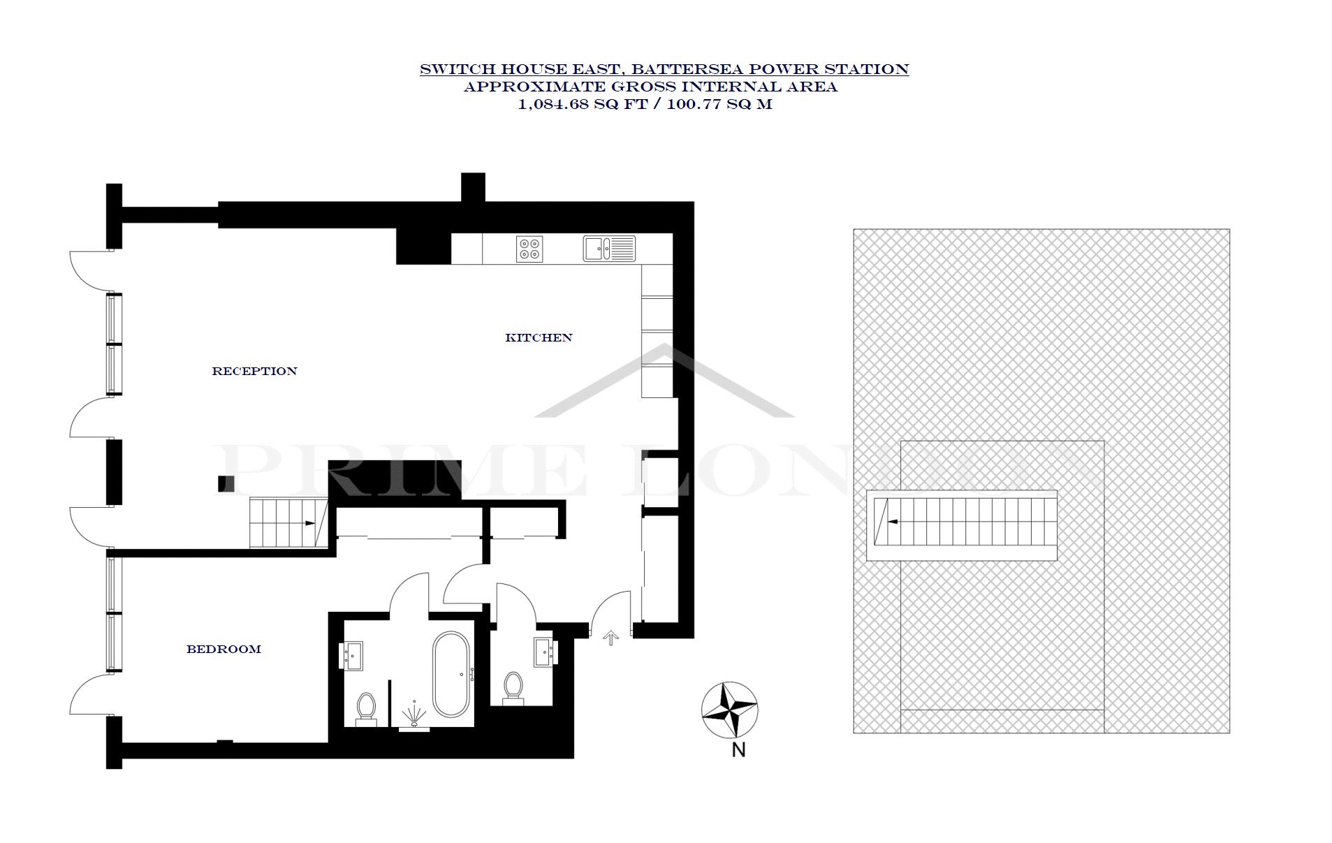 Fully furnished. This exceptional duplex penthouse apartment, with huge private roof terrace and set in a prime river facing position within Switch House East, Battersea Power Station (next to the River Thames, Battersea Park and new Battersea Power Station Northern Line station), is available to rent through Prime London.