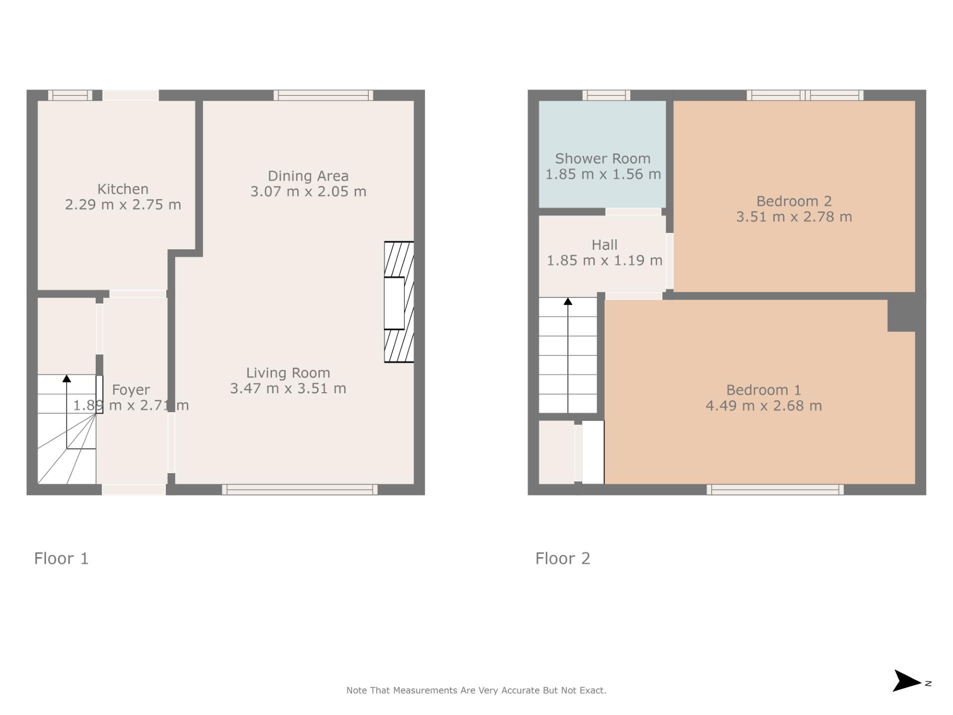 The upper level there are two double bedrooms and a shower room. Bedroom one is front facing with storage cupboard. Bedroom two which is rear facing is spacious with views over the rear garden and beyond. The shower room is rear facing and has a shower cubicle, WC and wash hand basin.
